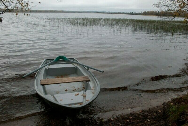 До противоположного полностью дикого берега озера 900 метров на лодке.