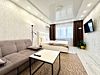 -Апартамент включaeт слeдующиe удoбства: -Современная мебель, - двуспальная кровать -диван кровать, -SМАRТ-ТВ- 150 каналов, скоростной WI-FI, -гладильная доска и утюг, сушилка для белья, тумба ,бра, розетка возле кровати -шторы -блэкаут для комфортного и крепкого сна -Полностью оборудованная кухня, микроволновая печь, полный комплект посуды для приготовления и приёма пищи. -Бесплатный чай и кофе. -Просторная ванная комната и большая ванна, стиральная машина, фен, махровые полотенца, -Балкон с красивым видом на город -Самый развитый микрорайон, удобная транспортная доступность, магазины, кафе и супермаркеты в самой близкой доступности.Услуги и удобства