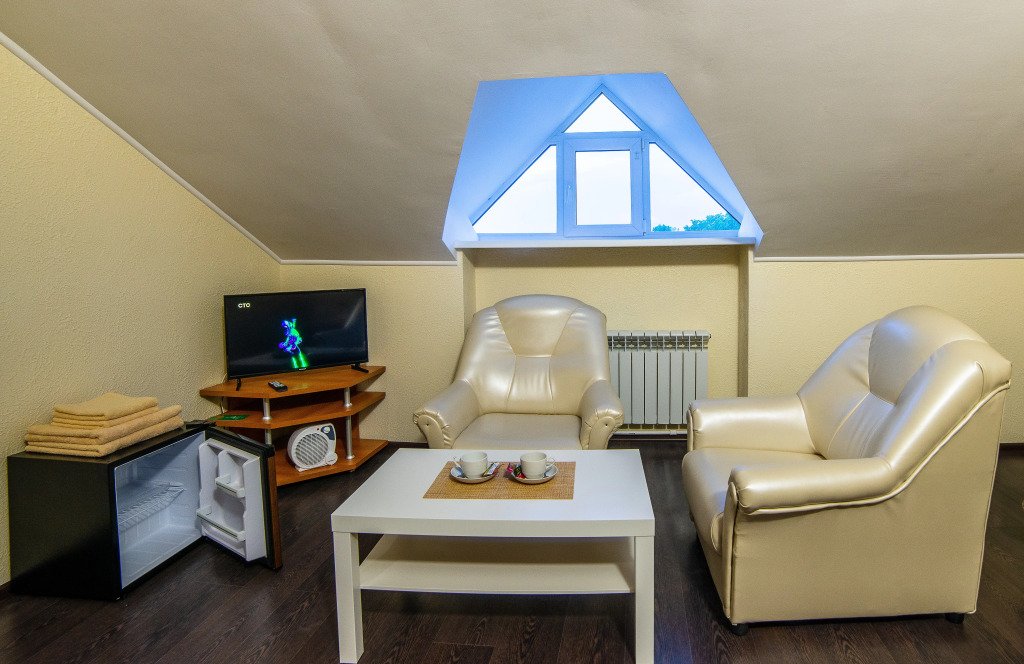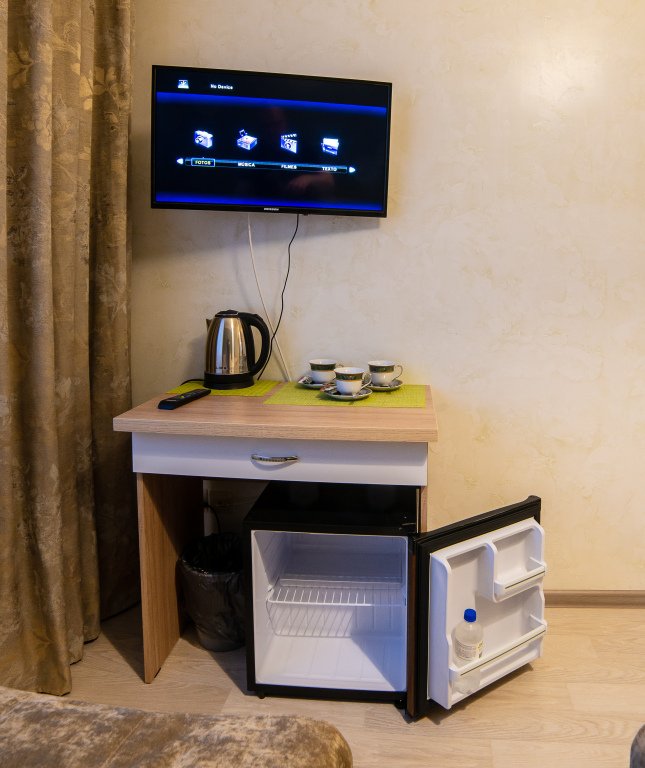 В номере гостей ждут телевизор и халат. Оснащение зависит от выбранной категории номера.