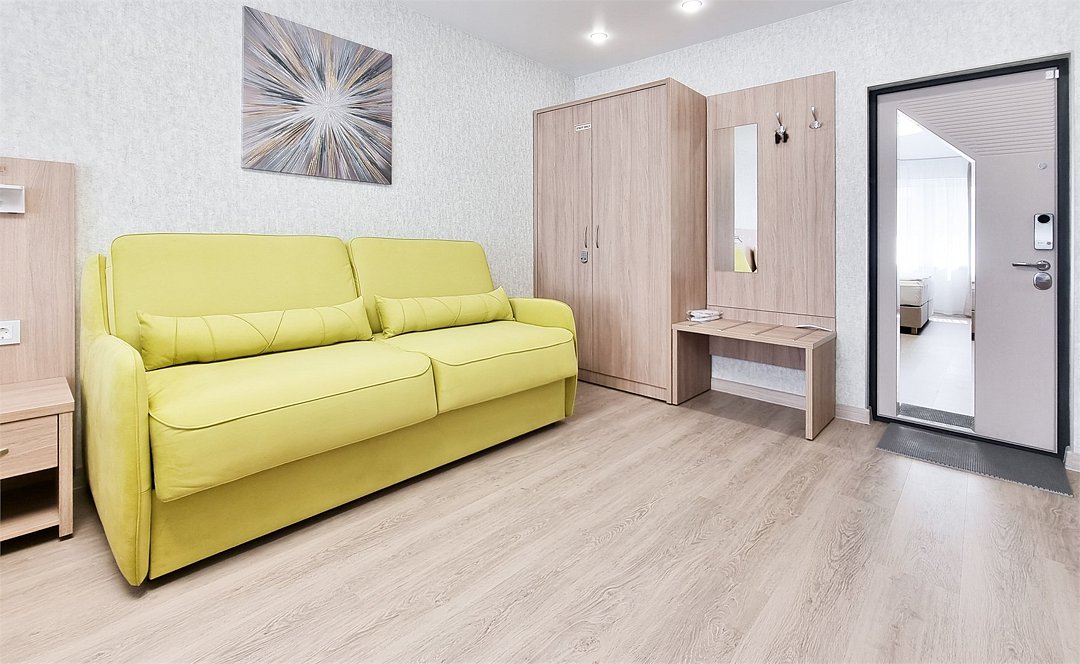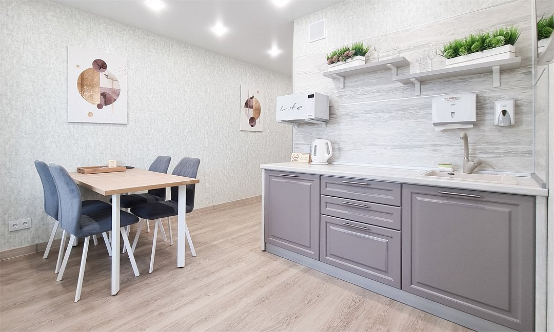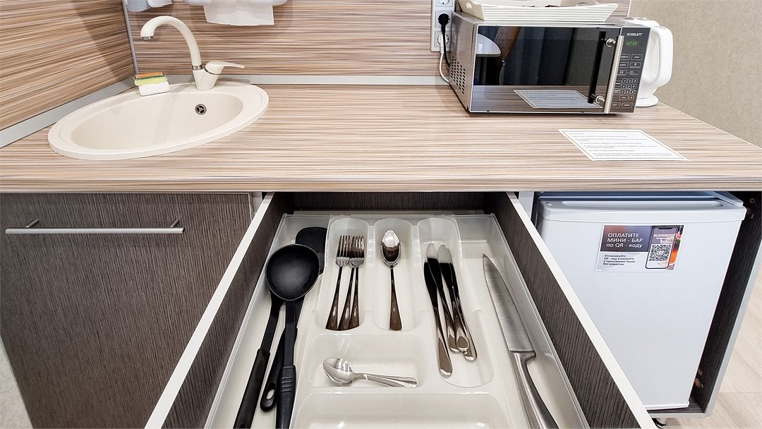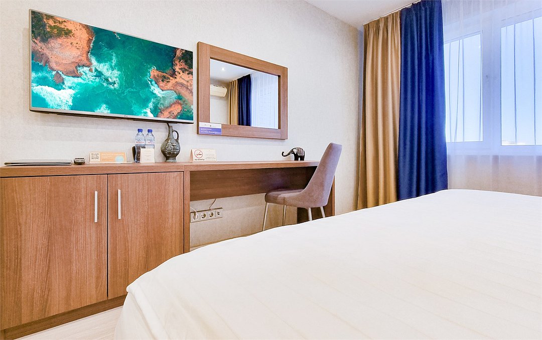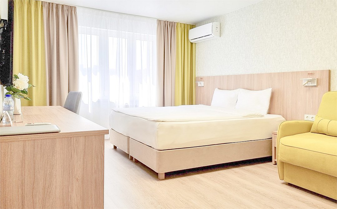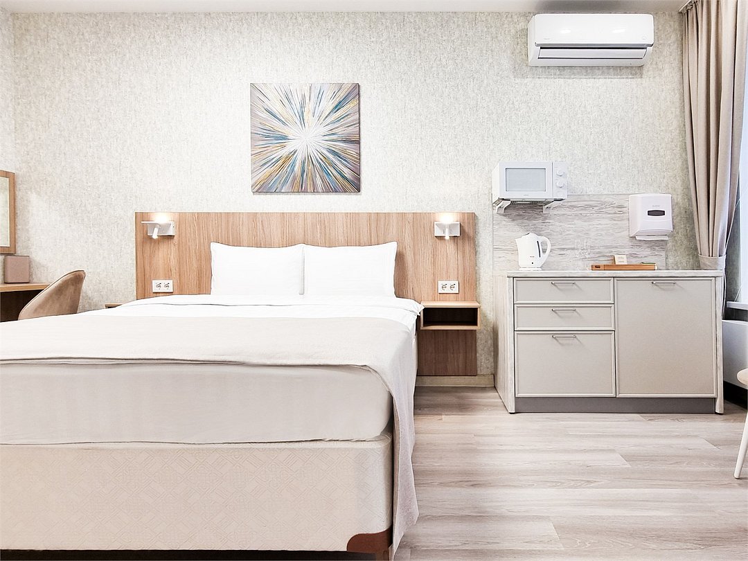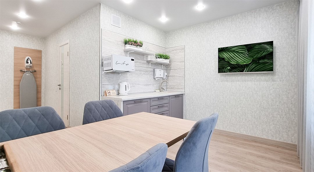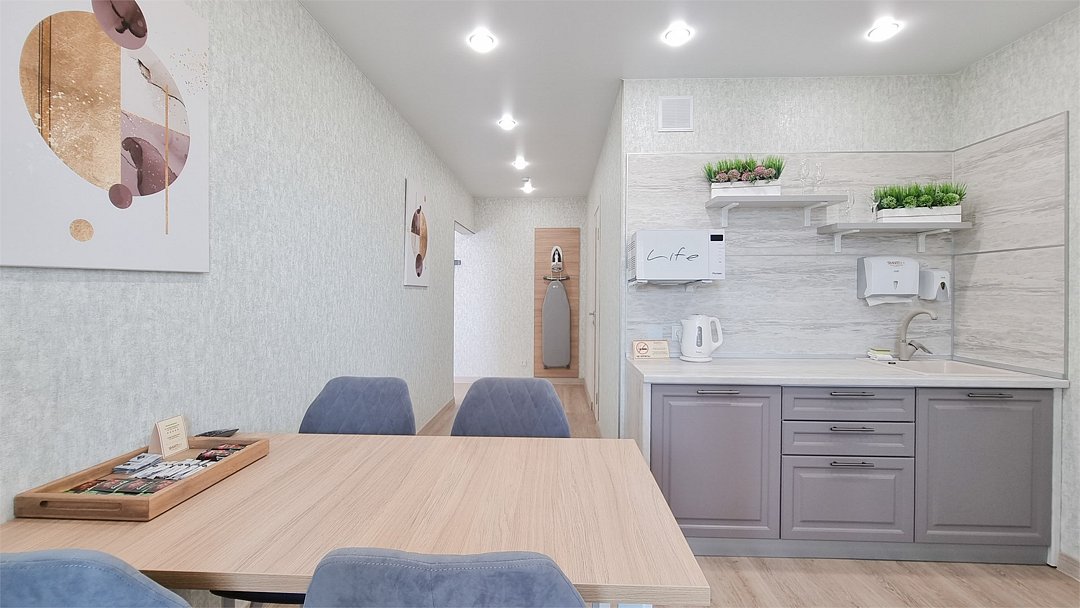 Апартаменты CITY LIFE DELUXE — это просторное и стильное решение для комфортного отдыха в самом центре города. Здесь вас ждёт уютная атмосфера, современный интерьер и удобства, продуманные до мелочей. Главное преимущество апартаментов — возможность объединять номера в коннект, что делает их идеальным выбором не только для больших семей или компаний друзей, но и для коллег, путешествующих вместе в деловых целях. Номер площадью 23 м² оснащён: * удобной двуспальной кроватью; * кухней с необходимым оборудованием (без плиты); * микроволновой печью и холодильником; * гладильным комплексом; * системой кондиционирования; * современной системой «умный дом», которая позволяет управлять светом, кондиционером и окнами; * умной колонкой с голосовым помощником Алисой для вашего комфорта. Для бизнес-путешественников предусмотрены дополнительные преимущества: * рабочая зона с удобным столом и стулом; * высокоскоростной Wi-Fi для стабильных онлайн-конференций; * спокойная обстановка для продуктивной работы; * удобное расположение в центре города — рядом с деловой инфраструктурой и транспортными развязками. Апартаменты CITY LIFE DELUXE — это сочетание уюта, инновационных технологий, функциональности и высокого комфорта, подходящее как для отдыха, так и для деловых поездок.Услуги и удобства
