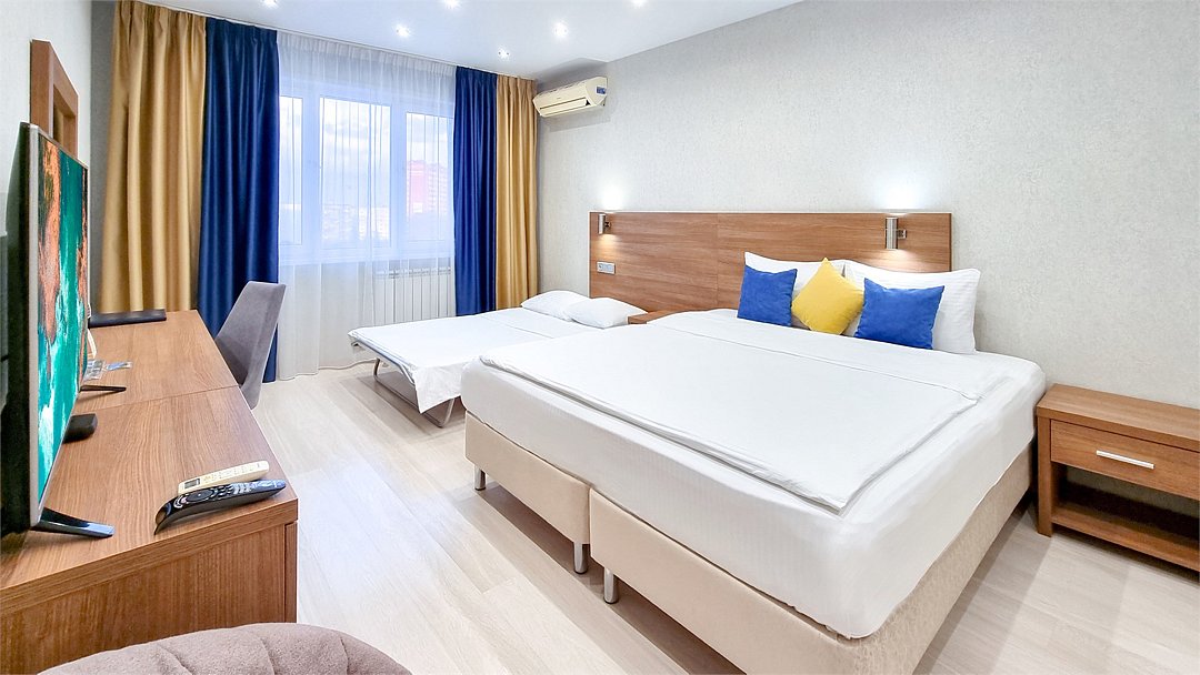 два телевизора, интерактивное телевидение, подборка видео/аудио, Wi-Fi, интернет, кондиционер, система климат-контроля, светильник, фен, система безопасности, электронные замки, плита для приготовления пищи, микроволновая печь, утюг, ванная комната, ванна, банные полотенца, тапочки, косметические средства, балкон, двуспальная кровать, гладильная доска, диван, тумбы, стулья, шкаф для одежды, вешалки, обеденный стол, багажная тумба, зеркало, комод, мебельный гарнитур, кухня, мини-бар, чайный набор, набор посуды, сейф, стиральная машина, чайник, унитаз, раковина, обеденная зона, отопление, вид на город, ламинат, кухонная посуда, стаканы, кухонная утварь, столовые приборы, стул, тумба, туалетный столик, туалетные средства, сплит-система, сушилка для белья, цифровое тв, раскладной диван, телевизор с плоским экраном, мини-холодильник, номер для некурящих, usb порт, рабочий стол, антибактериальное средство для рук, онлайн-регистрация до заезда, система умный дом, морозильная камера, умная колонка, вешалки-плечики, бутилированная вода, без питомцевВ аппартаментах