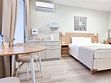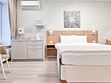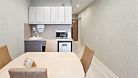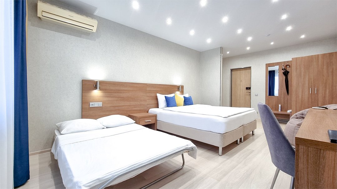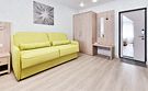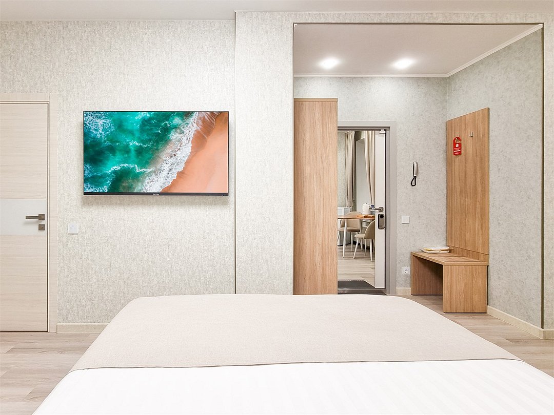 Апартаменты OLIMPIA DELUXE — это сочетание простора, комфорта и современного стиля. Номер площадью 41 м² создан для комфортного отдыха как индивидуальных гостей, так и семей с детьми или небольших компаний. В распоряжении гостей — большая двуспальная кровать King Size (или две отдельные односпальные кровати по запросу), а также дополнительные спальные места. Кухня оборудована всем необходимым для приготовления любимых блюд, предусмотрен удобный гладильный комплекс. Система кондиционирования и продуманные до мелочей детали обеспечат идеальный микроклимат и комфорт в любое время года. Для бизнес-путешественников в апартаментах предусмотрены удобное рабочее пространство и высокоскоростной Wi-Fi, что позволит с комфортом совмещать отдых и работу. Тишина и продуманный интерьер помогут сосредоточиться на делах, а после продуктивного дня — восстановить силы в уютной атмосфере. OLIMPIA DELUXE — это уровень комфорта высшей категории, где каждый элемент интерьера работает на ваше удовольствие, отдых и успешные деловые поездки.Услуги и удобства