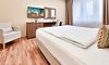 Апартаменты «EVEREST COMFORT» представляют собой просторный номер с двуспальной кроватью King size (или двумя односпальными, по запросу). Панорамный вид на город, сосновый лес. Вы великолепно отдохнете!