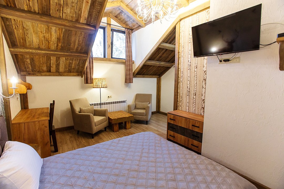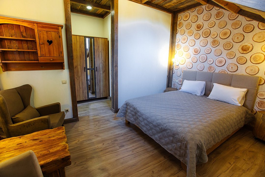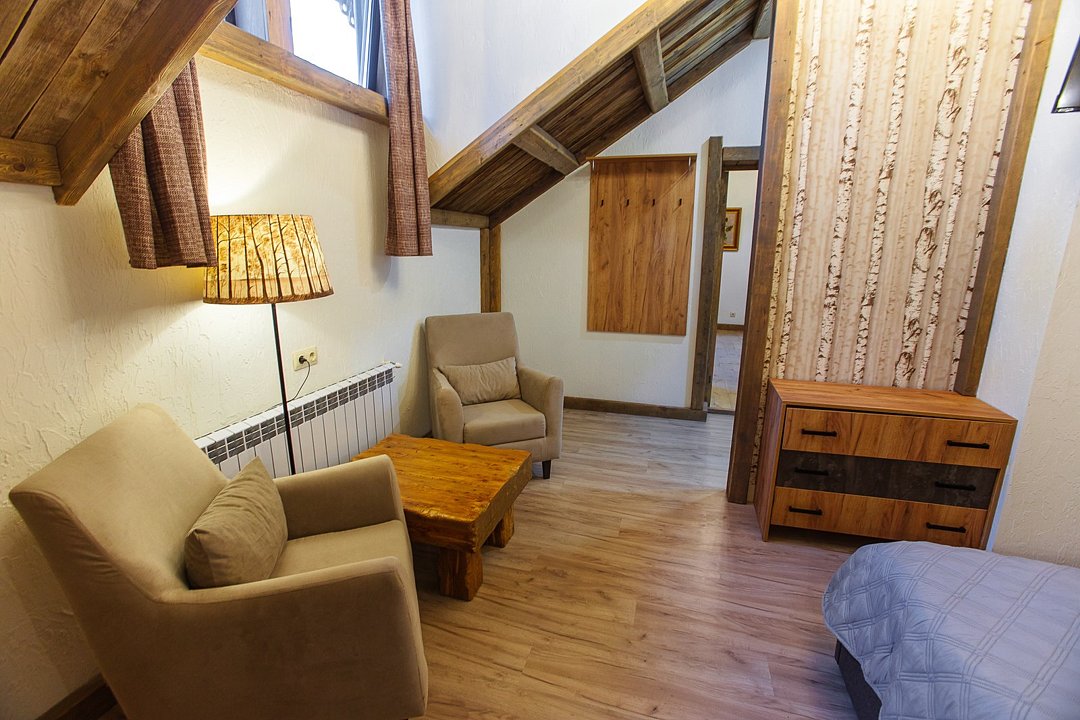 Однокомнатный номер категории Комфорт в стиле "шале". Отдых вдали от городской суеты в тишине соснового леса на берегу реки. Уникальный многоуровневый ландшафт с прудами, журчащими ручейками и водопадами. Эко-ферма с животными из разных уголков мира во главе с нашими любимцами оленями. Различные развлечения для гостей на территории: рыбалка, прогулки на лодке, спортивная площадка, велопрогулки, сауна с аква-зоной, разнообразные барбекю беседки и многое другое.Услуги и удобства