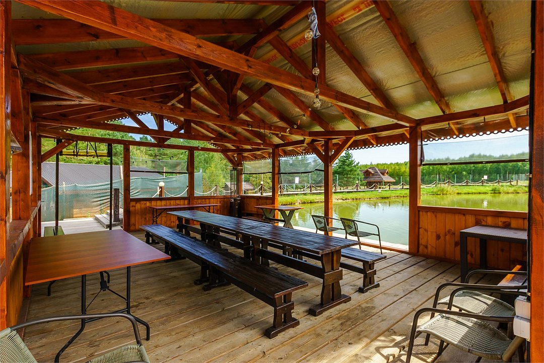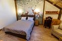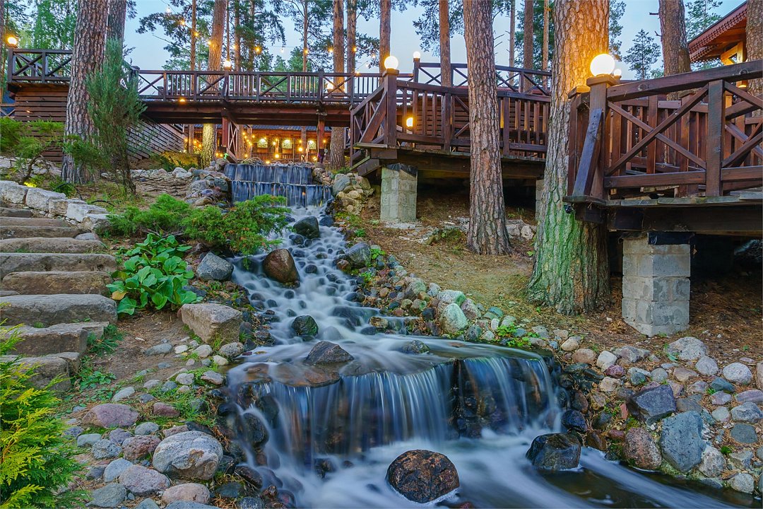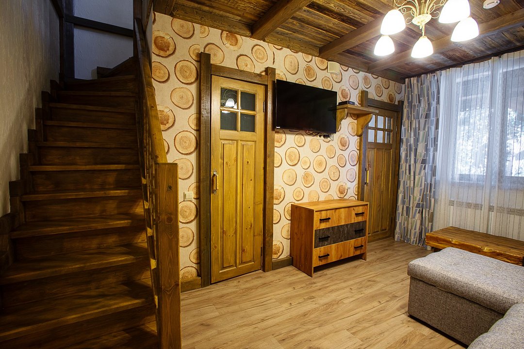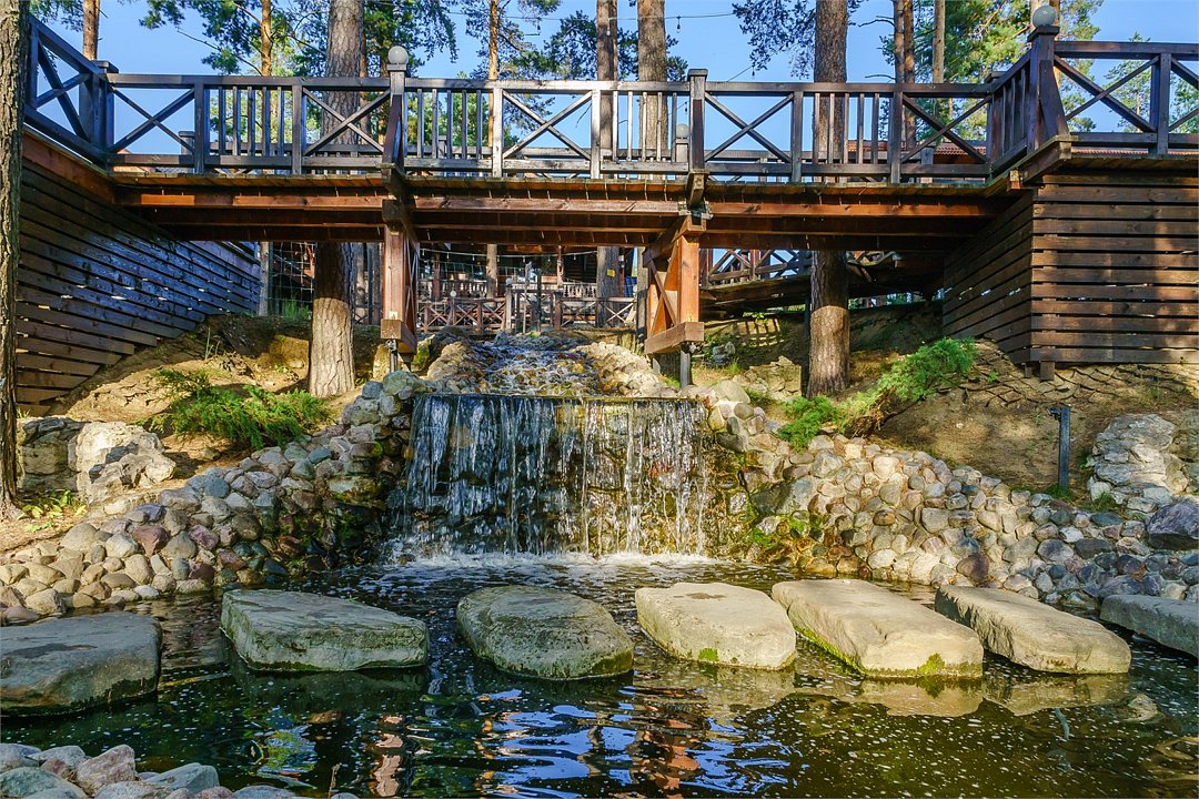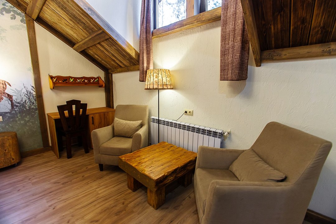 Двухуровневый номер категории Семейный в стиле "Шале". Отдых вдали от городской суеты в тишине соснового леса на берегу реки. Уникальный многоуровневый ландшафт с прудами, журчащими ручейками и водопадами. Эко-ферма с животными из разных уголков мира во главе с нашими любимцами оленями. Различные развлечения для гостей на территории: рыбалка, прогулки на лодке, спортивная площадка, велопрогулки, сауна с аква-зоной, разнообразные барбекю беседки и многое другое.Услуги и удобства