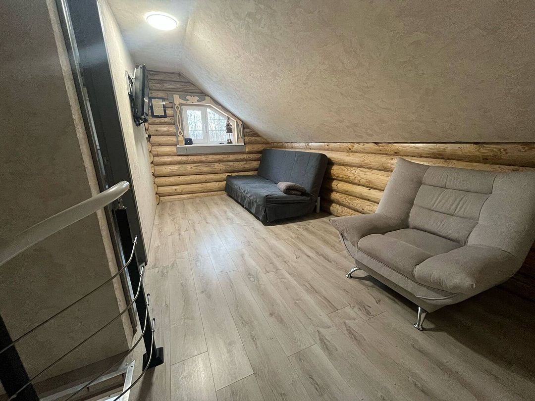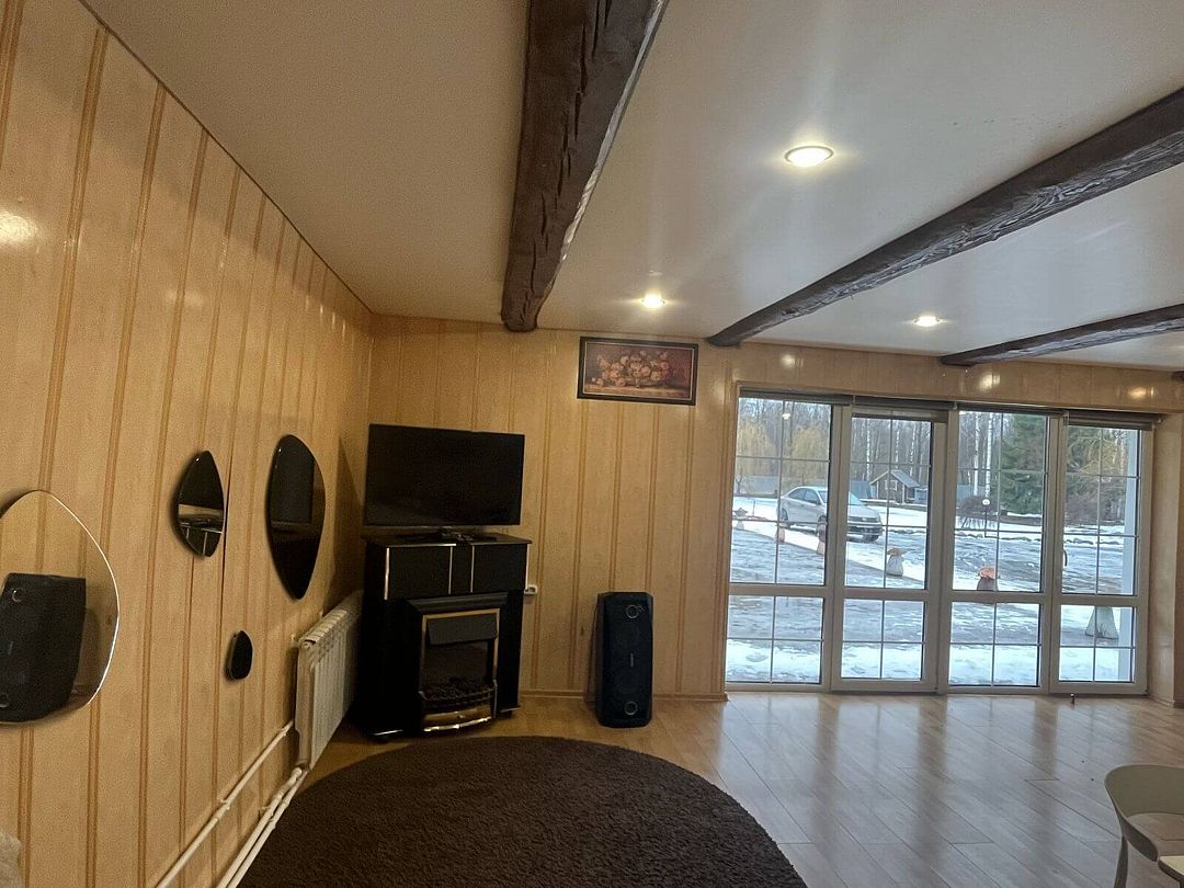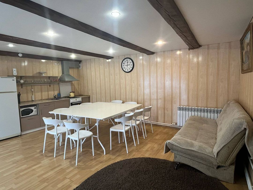 Просторная гостиная, Wi-Fi ,телевизор, музыкальная колонка, душ, санузел, беседка и мангал. В доме есть абсолютно всё для проведения праздников и банкетов. Дополнительно можно заказать русскую баню на дровах или молодильный банный чан.