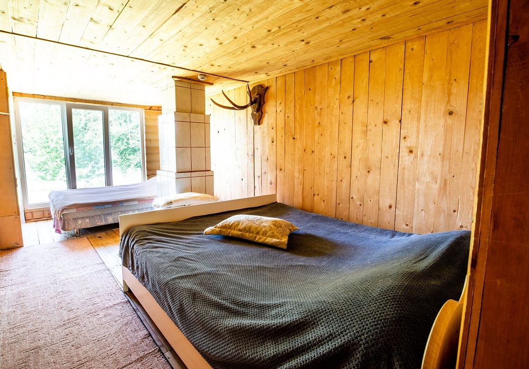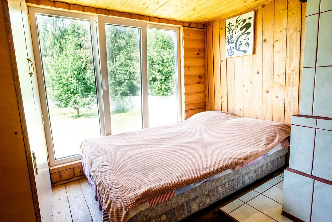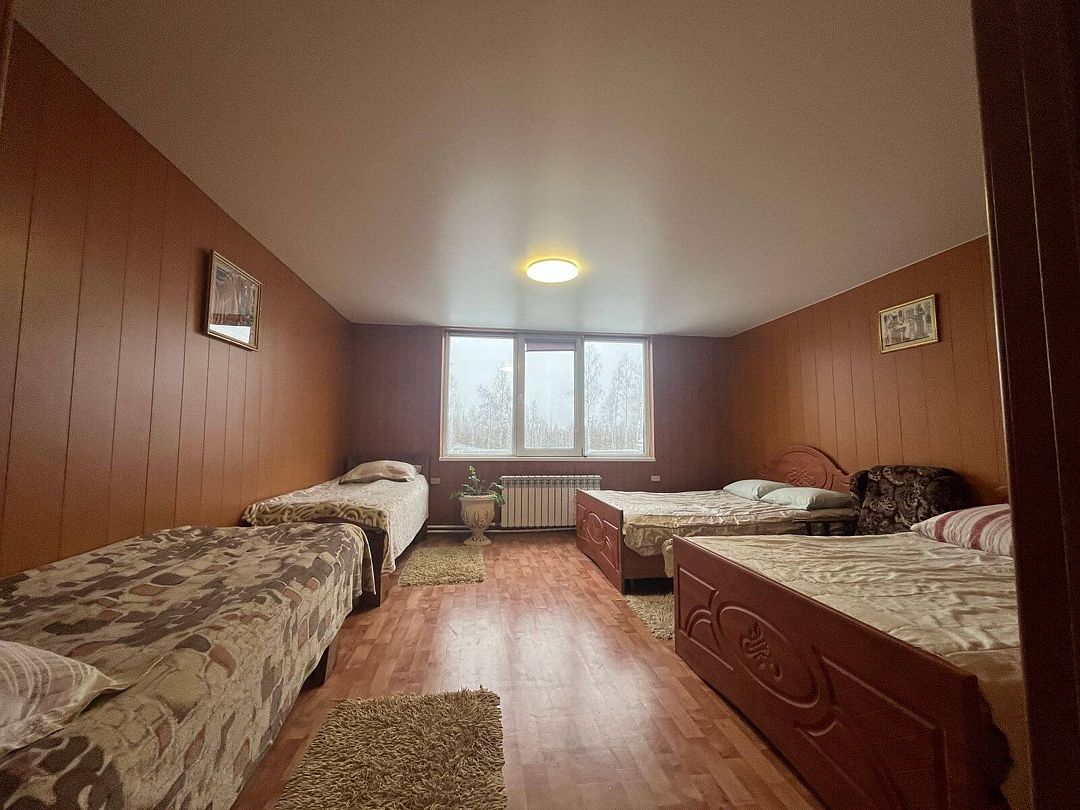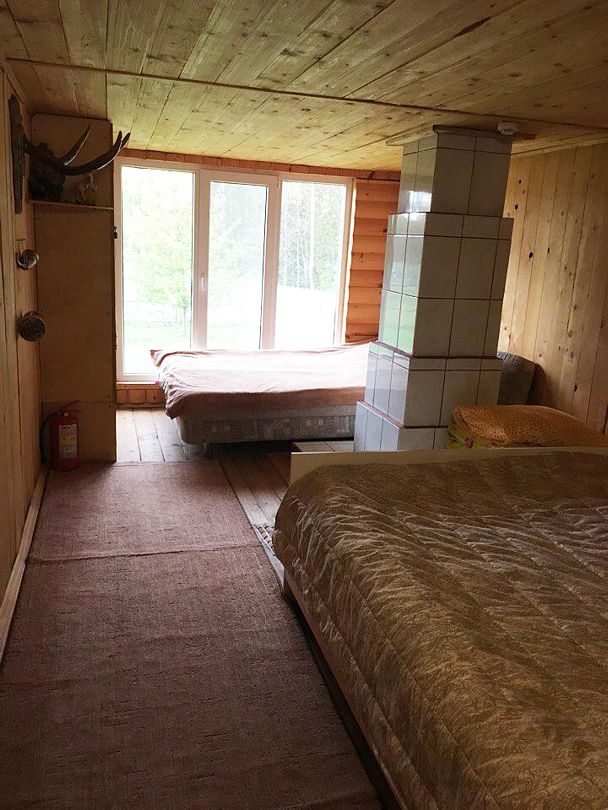 В доме 4 спальни, 4 двуспальные кровати, 2 дивана и 3 раскладных кресла, русская печка как +2 спальных места. 1 спальня: двуспальная кровать и кресло-кровать, 2 спальня: двуспальная кровать, 3 спальня: двуспальная кровать и диван раскладной, 4 спальня: двуспальная кровать и два кресло-кровати.
