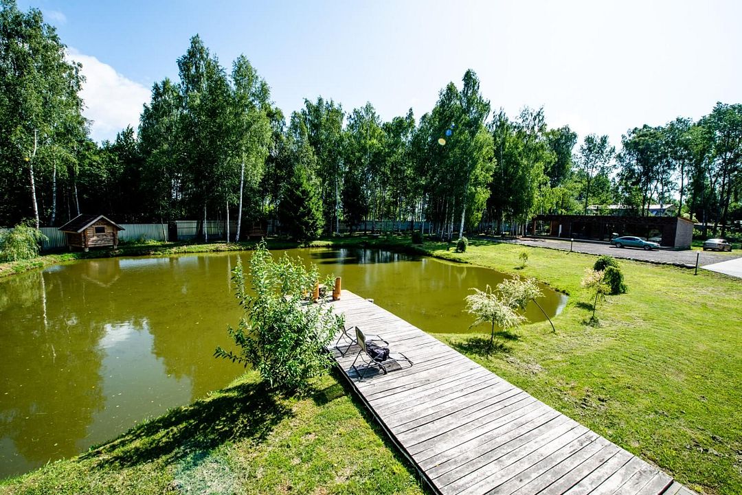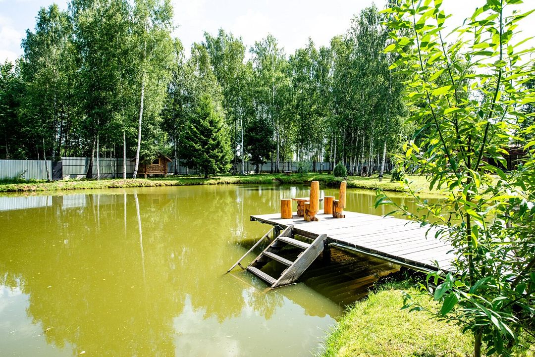 - Пруд на территории с рыбалкой;