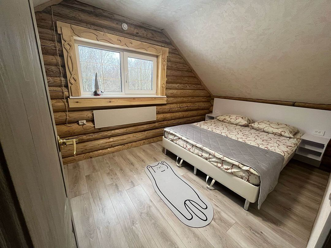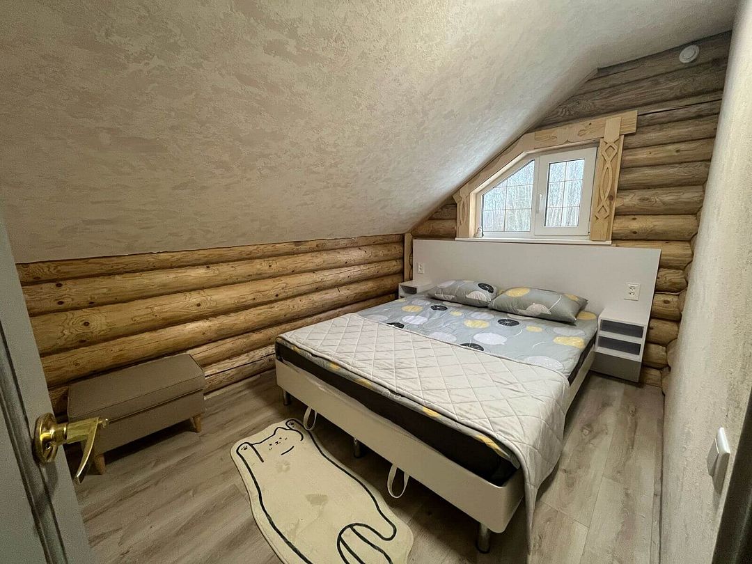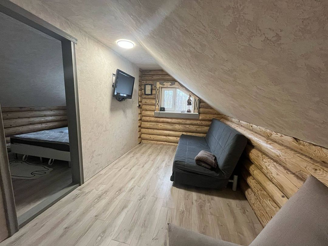 Дом лесной, есть всё для комфортного проживания и проведения досуга. Душ, санузел, финская баня, посуда, телевидение, постельное бельё, полотенце, беседка, мангал, шампура и решетки.