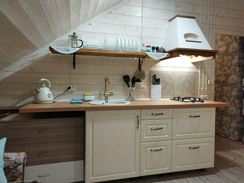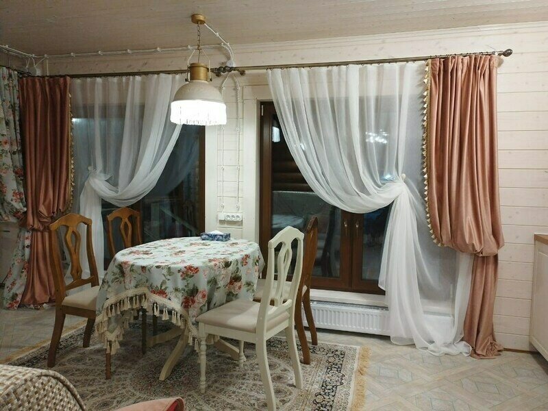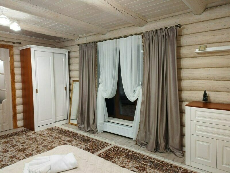 Для проживания предоставляется 2-х этажный дом с полностью оборудованной светлой кухней, санузлом, гармонично подобранной цветовой гаммой интерьера, натуральными тканями, деревянной мебелью, а также с 4-мя спальнями.