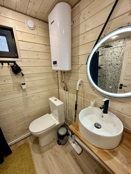 Инфраструктура: купель, полотенца, душВ проживание в Домике с баней включена аренда собственной бани, стоящей рядом.