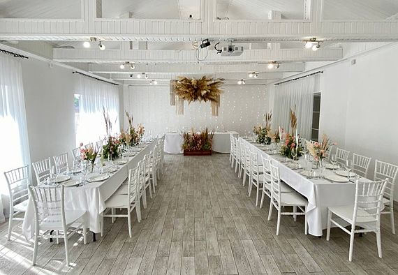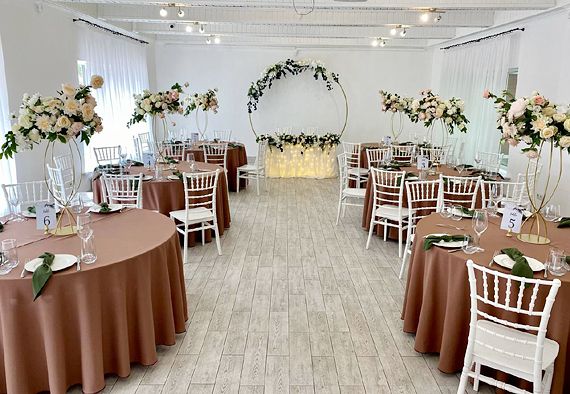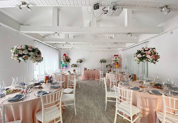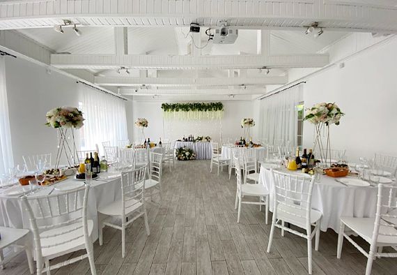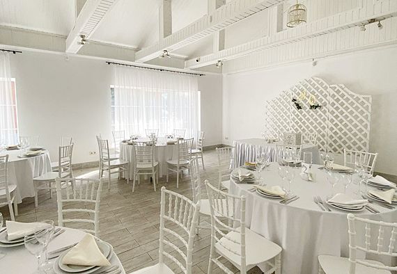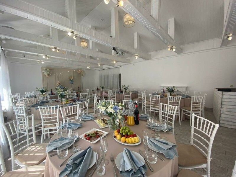 К услугам гостей два отдельных, круглогодично функционирующих банкетных зала. Территория комплекса обустроена уютным фруктовым садом, беседкой, а также специально оборудованной площадкой для проведения выездных свадебных церемоний и других торжеств.