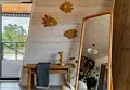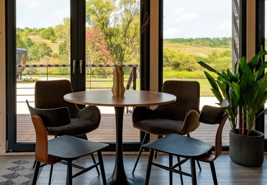 Проживание возможно в домах с мини-кухней, гостиной зоной, спальными местами и ванной комнатой. Предусмотрены панорамные окна. Wi-Fi и телевизор отсутствуют.