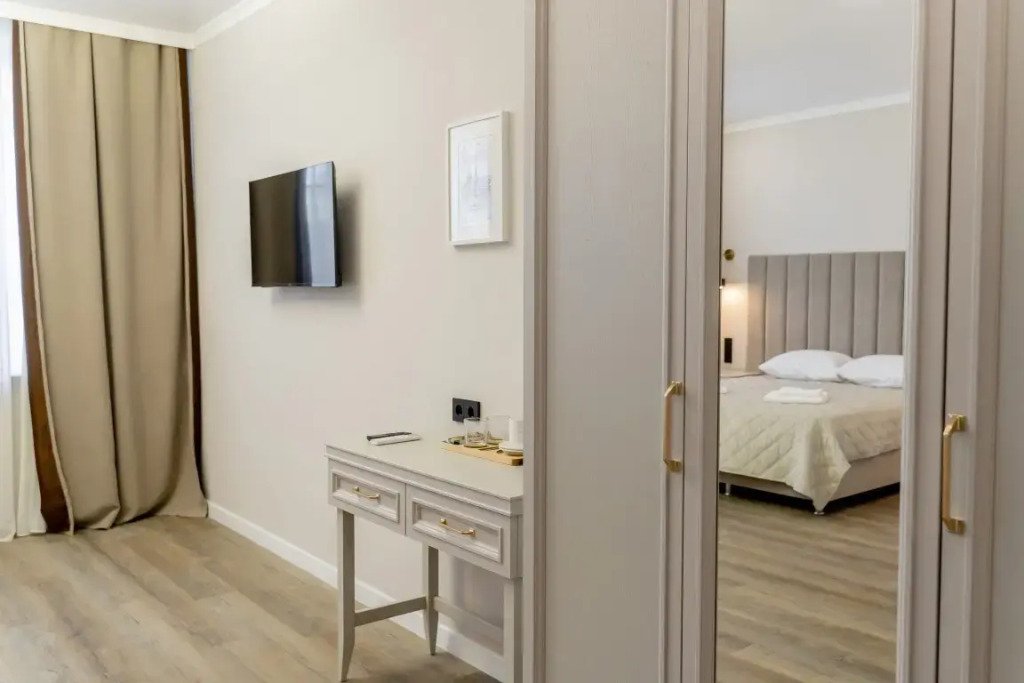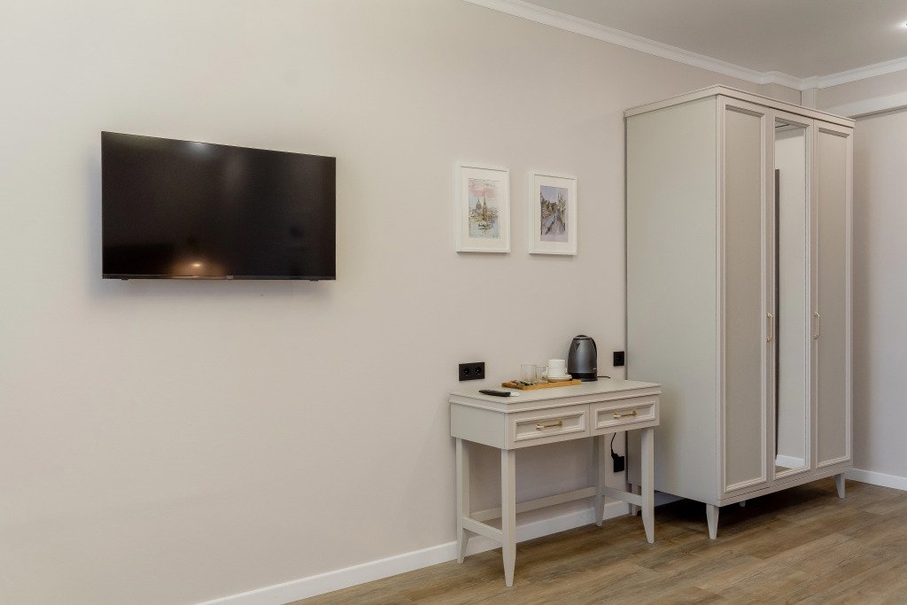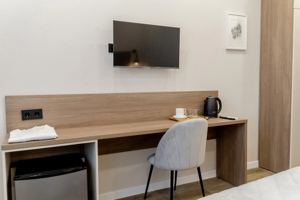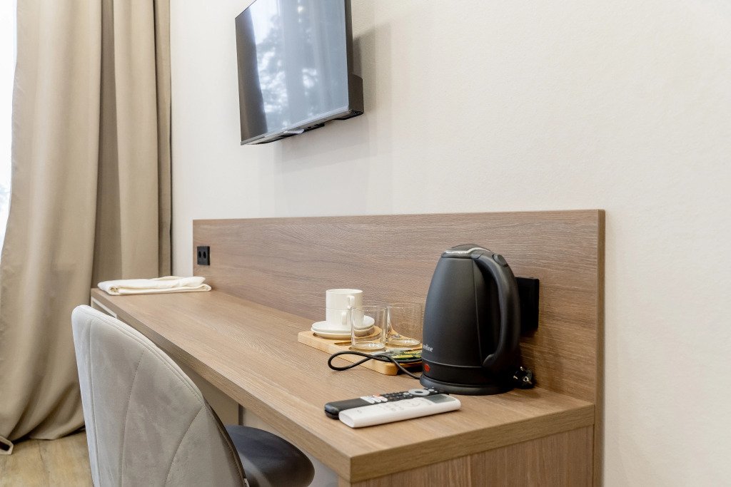 Номер уютно обставлен и оснащён необходимым, чтобы отдохнуть после долгого и насыщенного дня. Имеются телевизор. Перечисленные услуги есть не во всех номерах.