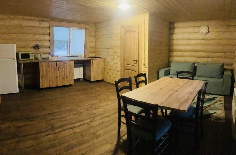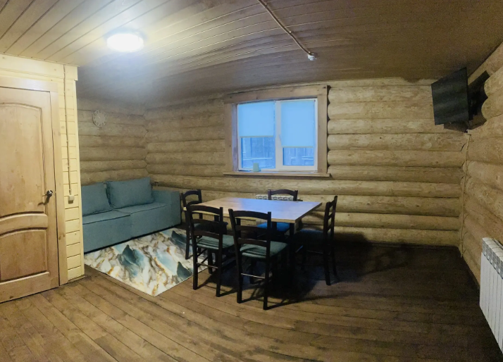 Инфраструктура: зона отдыхаБольшая баня на туристической базе «Уста» предлагает своим гостям просторную парилку с печью, а также уютную комнату отдыха, оборудованную столом, диваном, лавкой и телевизором. В комнате отдыха имеется чайник, травяной чай и стаканы для удобства гостей.