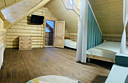 В студии, расположенной на втором этаже нового коттеджа, вас ждет большая удобная кровать, два дивана, а также обеденный уголок — все, что необходимо для комфортного пребывания как в одиночестве, так и в компании. При необходимости в студии возможно размещение дополнительного спального места.