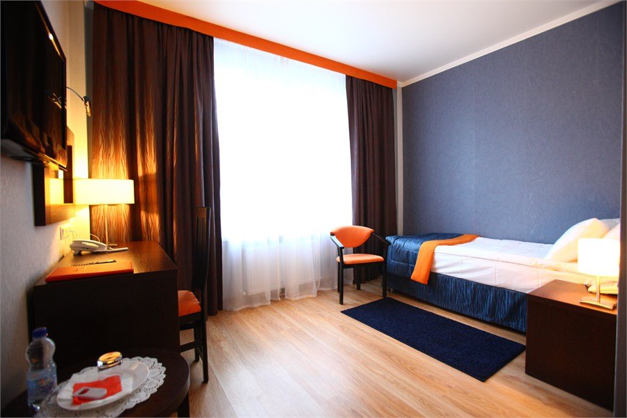 Стандартный номер с односпальной кроватью 90*200. Полный санузел с условиями для инвалидов, необходимым набором полотенец и средств гигиены, мощным феном. Бесплатный доступ в Интернет, электронная система контроля доступа в номер, индивидуальный сейф, телефонная связь, телевидение.Услуги и удобства