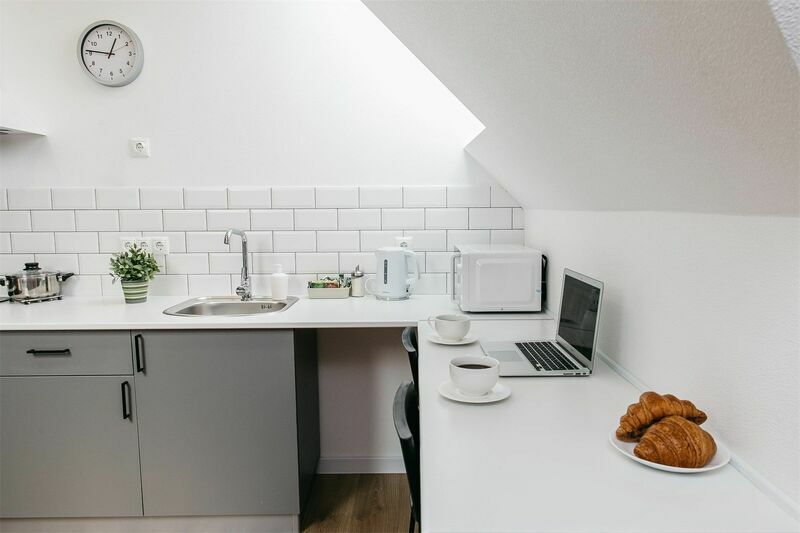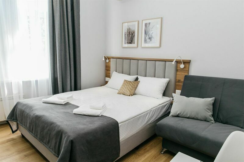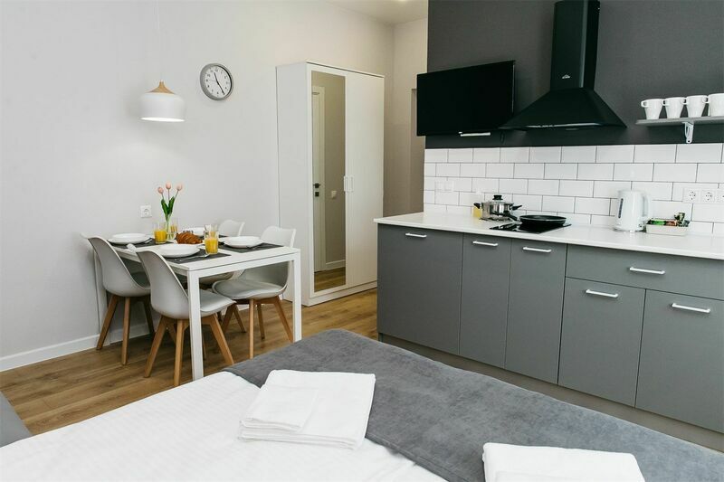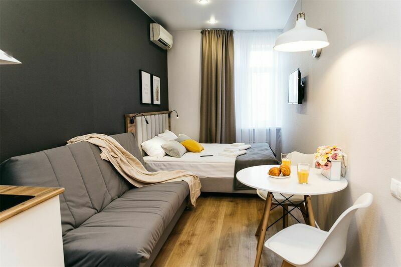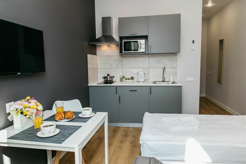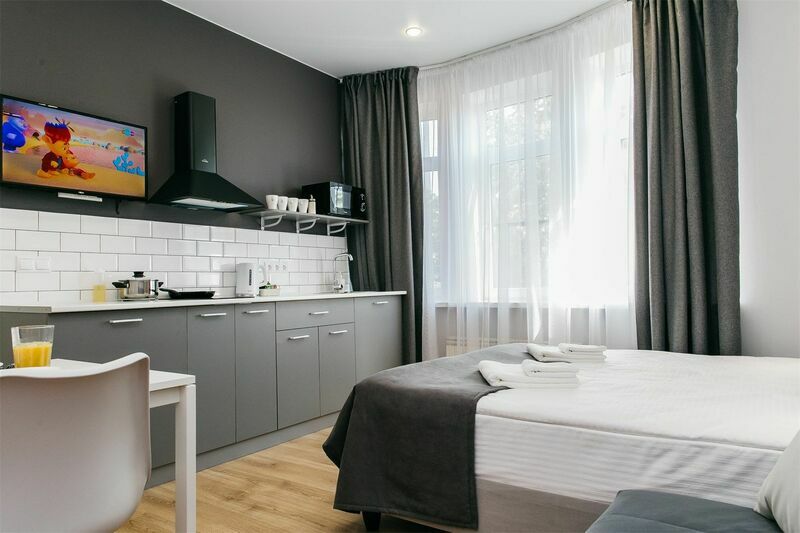 Апарт-отель располагается недалеко от центра Краснодара в тихом районе. Снять апартаменты можно для одного, двух, трех или четырех человек. В апартаментах есть кухня и вся необходимая бытовая техника. Наличие удобной и функциональной кухни особенно ценно для семей с детьми. Во дворе для гостей есть небольшой и уютный сад, где можно отдохнуть вечерами, выпить утренний кофе.