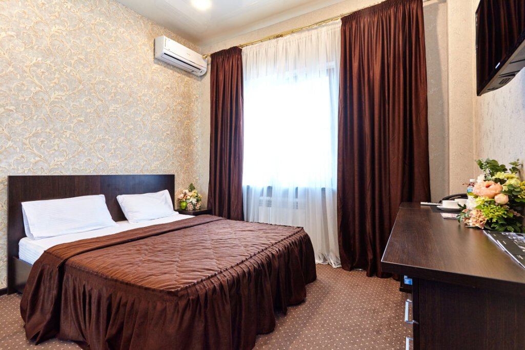 Номер уютно обставлен и оснащён необходимым, чтобы отдохнуть после долгого и насыщенного дня. Имеются телевизор. Оснащение зависит от выбранной категории номера.