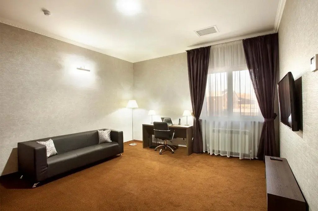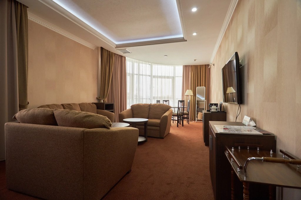 В числе удобств — кондиционер, мини-бар, телевизор с плоским экраном и спутниковыми каналами, а также ванная комната с халатами, тапочками, феном и бесплатными туалетно-косметическими принадлежностями.