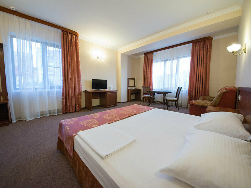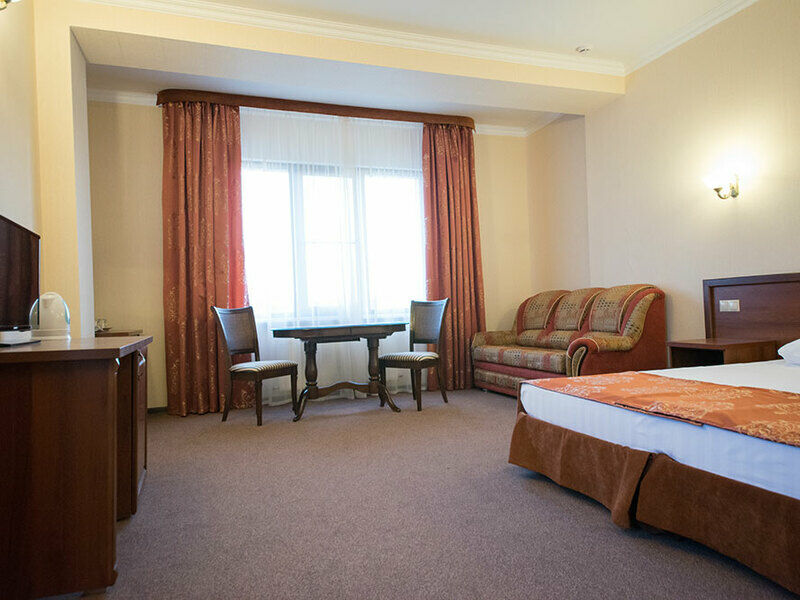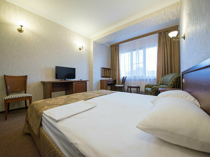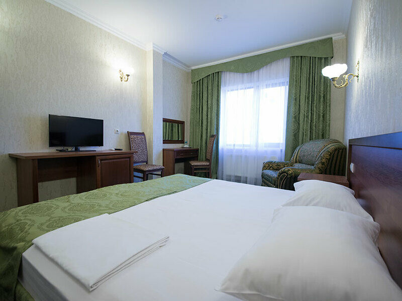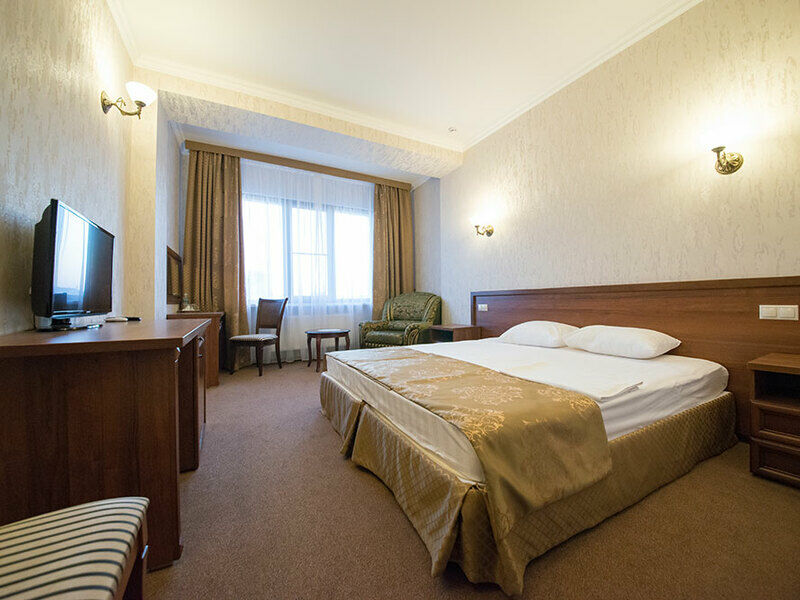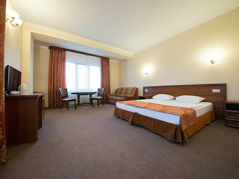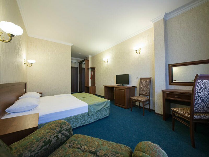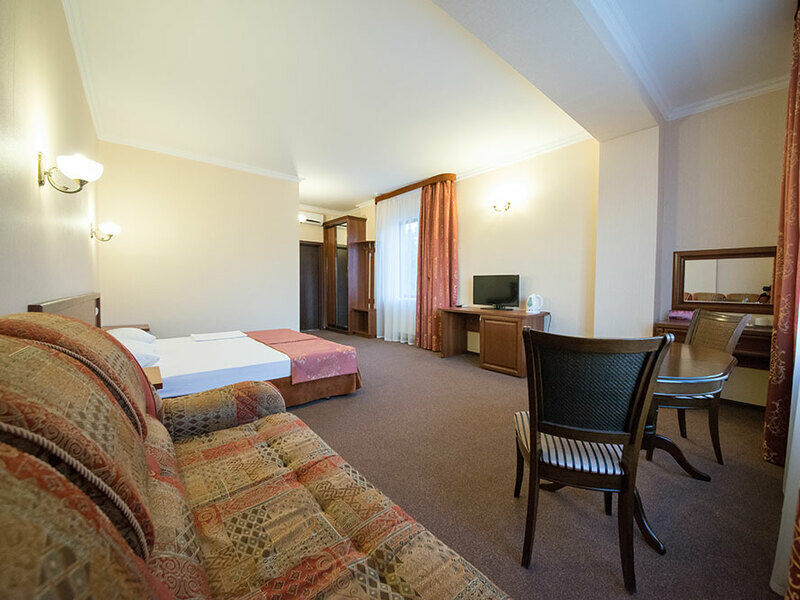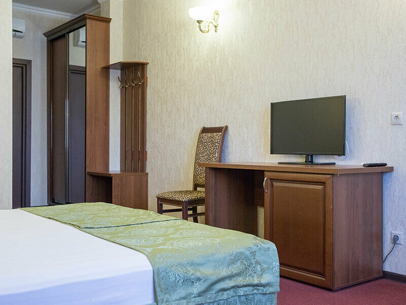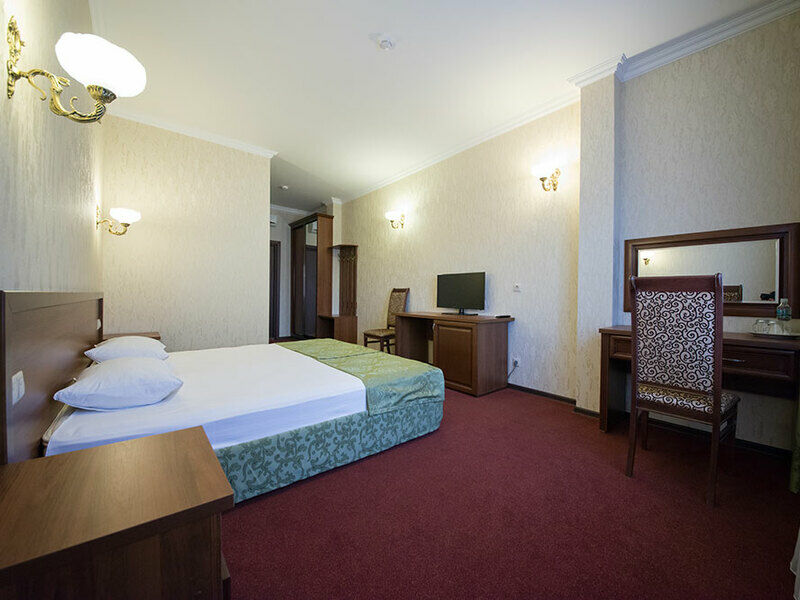 Здание отеля состоит из пяти этажей. В нем расположены двухместные номера Люкс, Полулюкс и Стандарт. В них есть все необходимое для отличного отдыха. Каждый номер оснащен душем или ванной, а также техникой: холодильником, телевизором, феном и кондиционером.