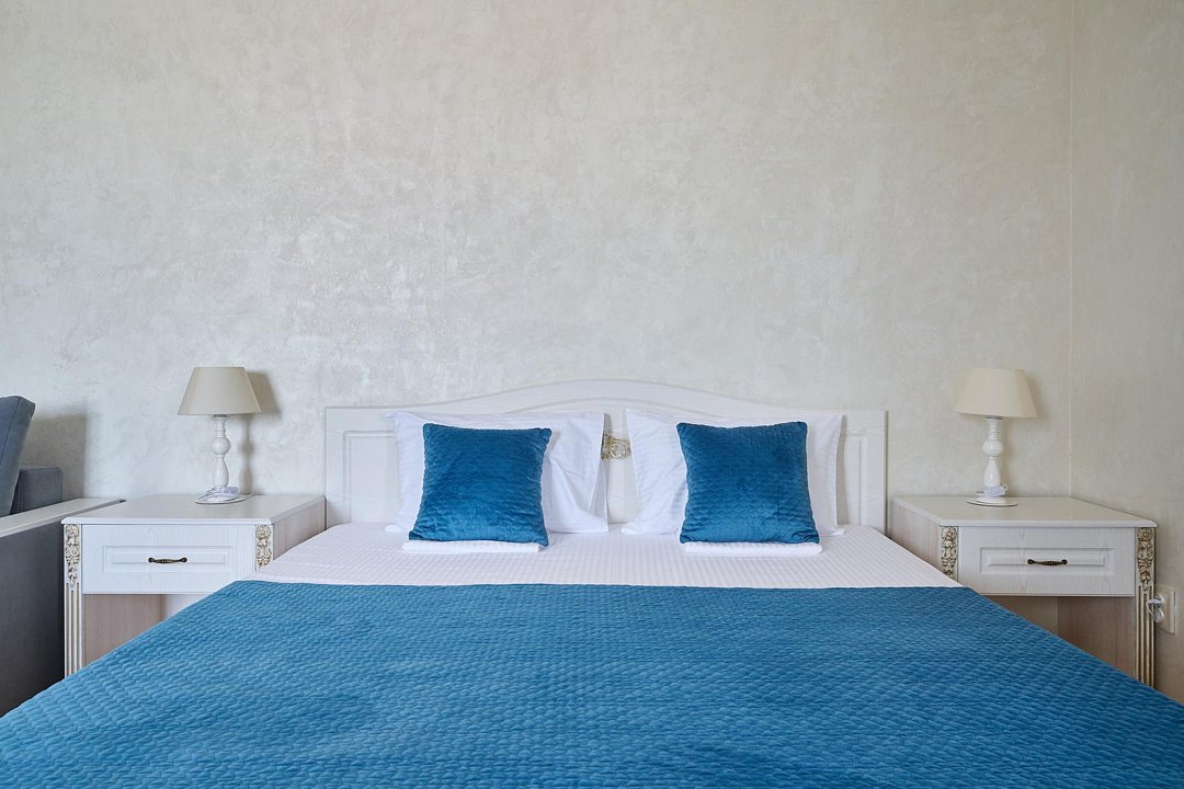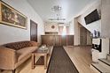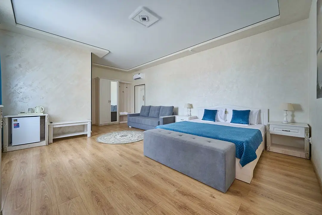 Номер «Комфорт Делюкс» — удобное размещение для компании или семьи из трёх-пяти человек, четыре человека размещаются на основных спальных местах (большая кровать и двуспальный раскладной диван), пятое место по запросу (доп. кровать в номер).