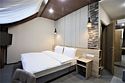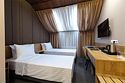 Комфортный двухместный номер, подойдет как для кратковременного проживая, так и для длительного. Номера со всевозможными удобствами - диванчик, сан.узел с душевой, раковиной и унитазом, сплит-система, мини-холодильник, ТВ на 20 каналов, сейф, прикроватные тумбы и светильники, шкаф, полотенца, средства гигиены, стол, пуф, чайная станция, фен, бесплатный WI-FI. Так же на территории отеля имеется бар-ресторан со специальным авторским меню, которое никого не оставит равнодушным.Улучшенный двухместный номер