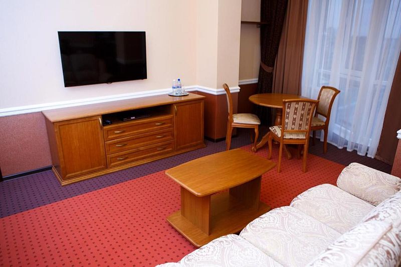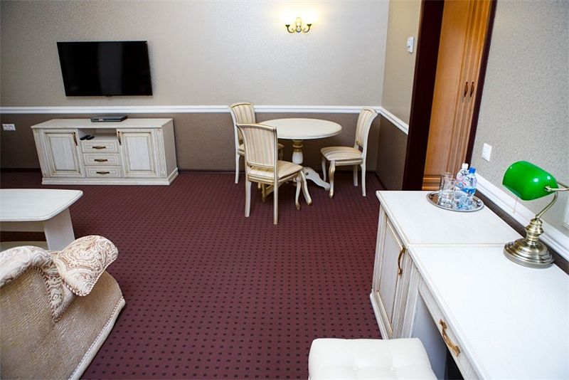 Люкс двухкомнатный — элегантный улучшенный номер, предназначенный для комфортабельного размещения как одного гостя, так и семейной пары. Данные номера имеют отдельную комнату для отдыха, приема гостей или работы.