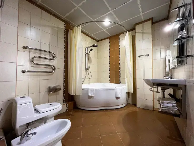 Также на территории отеля есть: круглосуточный ресторан, финская сауна с индивидуальным бассейном, летнее кафе, спортивные тренажёры.