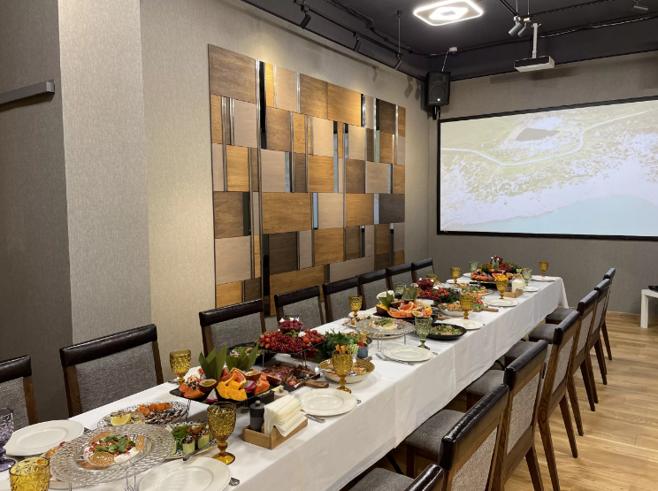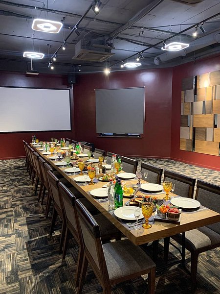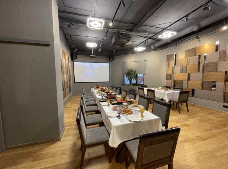 Современный зал для небольших мероприятий, оснащен LED проектором, системой звукоусиления, караоке системой.