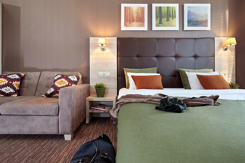 Для размещения гостей предлагаются 96 номеров и 44 апартамента различных планировок и вместимости, с кухней, стиральной машиной, посудой и уборкой. Светлые и просторные номера с удобной кроватью с ортопедическими матрасами премиум-класса Ascona подарят незабываемое ощущение комфорта. Отдыхающим предоставляется широкий спектр услуг для полноценного комфорта.