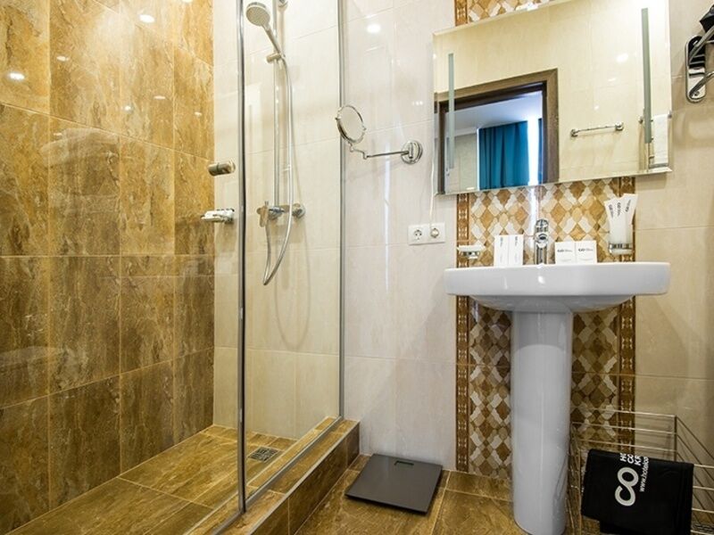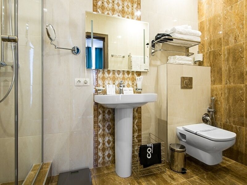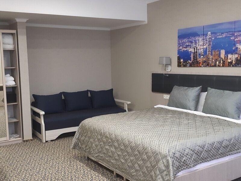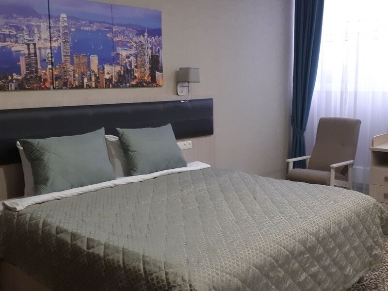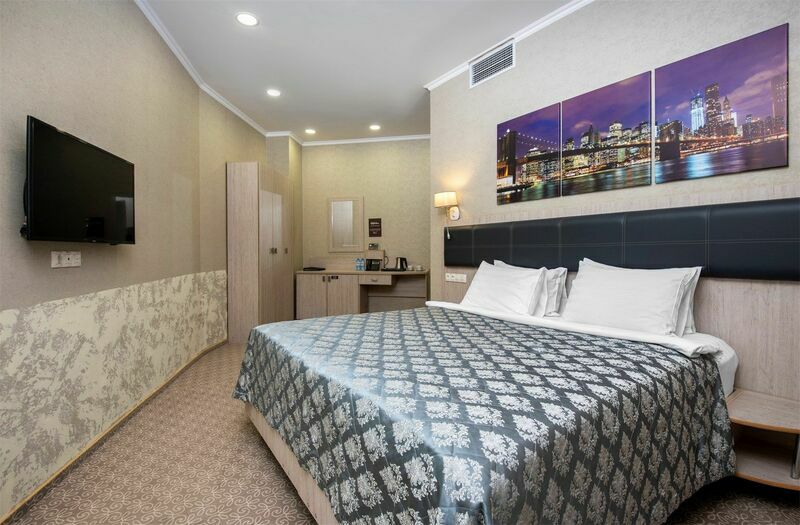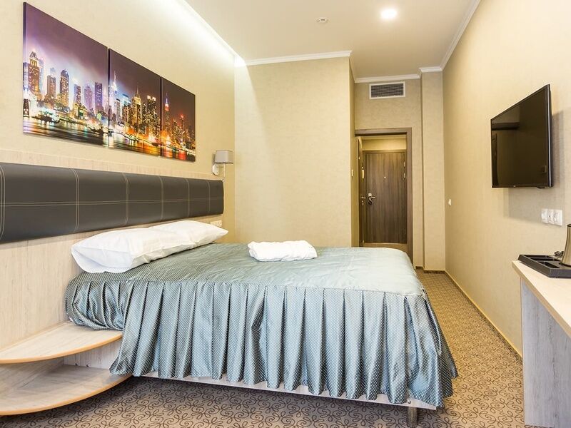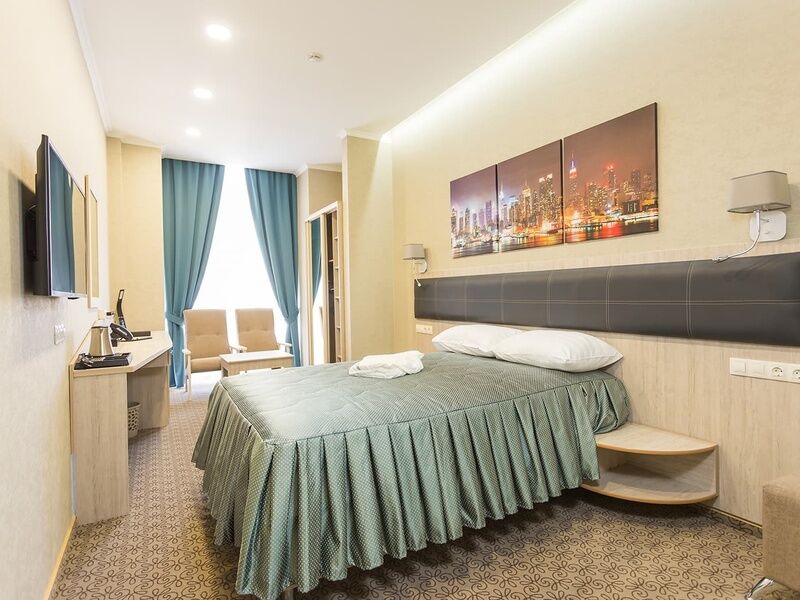 Путешествие с паройОстановка по дороге в Крым. Всегда сюда возвращаемся.Пожалуй, самый удобный для нас вариант остановки на ночь из Ставрополя в Крым. Часто ездим и всегда останавливаемся в этом очень гостеприимном отеле. За цену 4000 рублей мы получаем: тихий номер стандарт на 6 этаже с одной большой кроватью и видом на не оживленную улицу, чайник, чай, чашки с ложками, две бутылки с водой Пилигримм, сейф, фен, удобный матрас и подушки, зеркало с подсветкой, полноценная душевая кабина с гелем и шампунем в диспенсере, халаты, тапки, кондиционер, ТВ и телефон. Теперь о некоторых нюансах, за которые я снимаю балл. О них лучше знать заранее. 1. Парковка машины на ближайших улицах, так как перед зданием места всегда заняты. Их реально мало. 2. Завтрак не включён в стоимость номера, раньше он стоил 900 рублей на человека, то есть дорого. 3. Белье не хлопковое, а смесовое, и на него у меня дикая аллергия, что, конечно, очень неприятно. 4. Не было приборов и стаканов в шкафчике, раньше всегда все было на месте. 5. В стандартах нет мини бара или холодильничка. 6. Жуткий гул, видимо, блоков кондиционеров, с улицы, сразу не заснуть, пока не получится привыкнуть.
