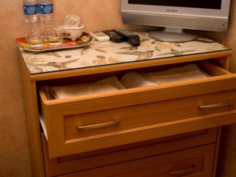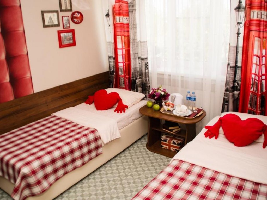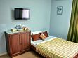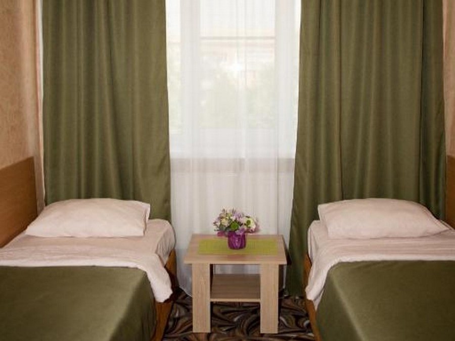 Одна комната с двумя отдельными спальными местами ,душевая кабина и туалет размещены вне номера, в отдельном помещении.В номере