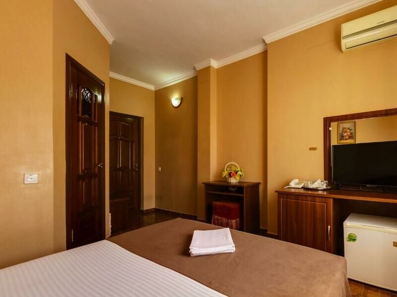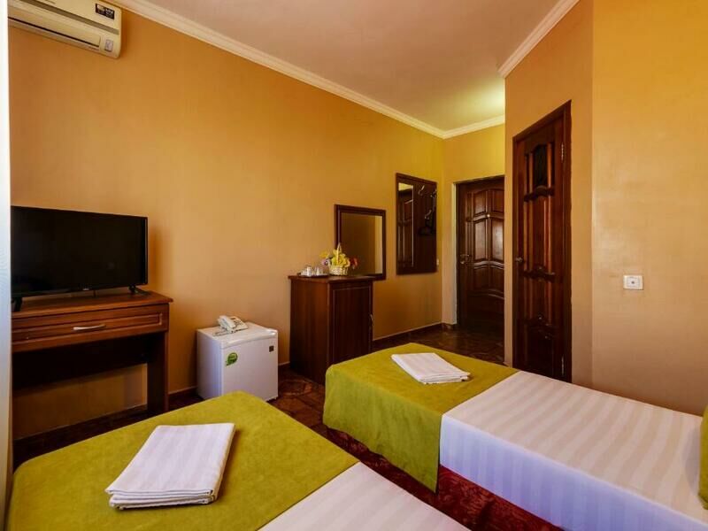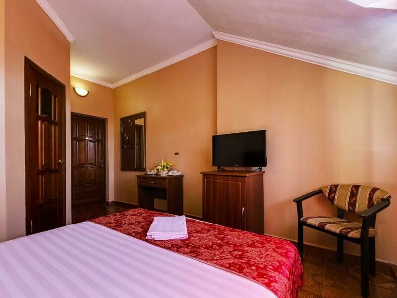 Номерной фонд состоит из 27 комфортных и уютных номеров для самого лучшего отдыха. Отличный дизайн интерьера, мини-бар, техника (плазменный телевизор, холодильник, сплит-система, WI-FI) – все это делает отель лучшим для поездки.