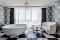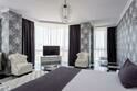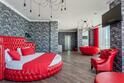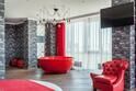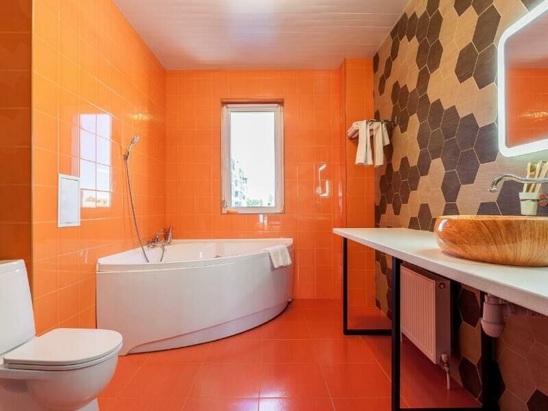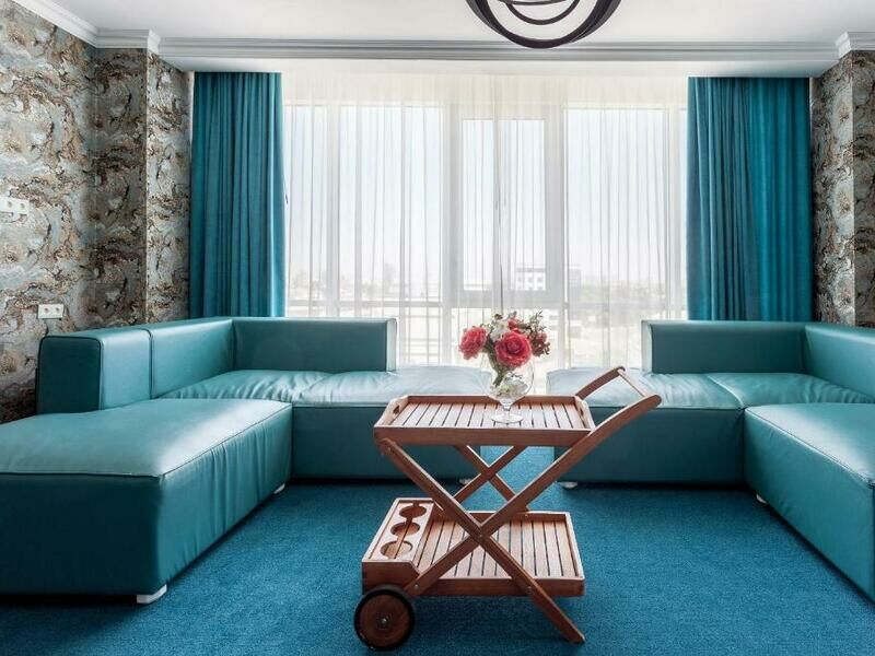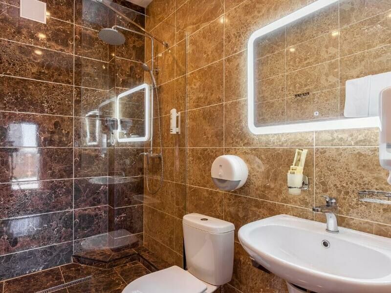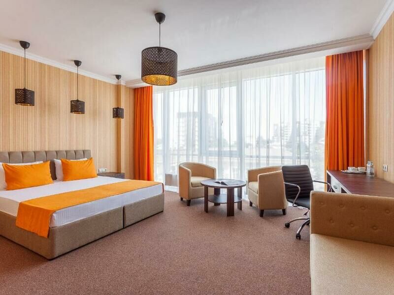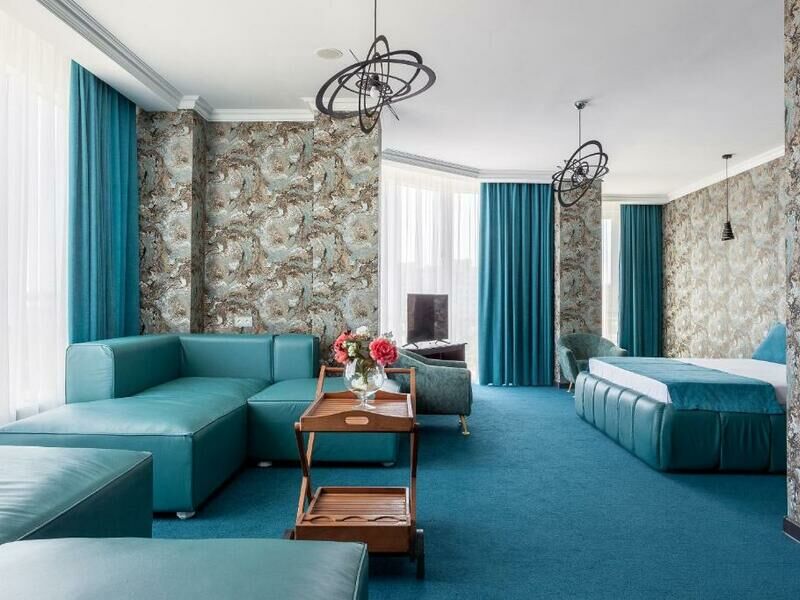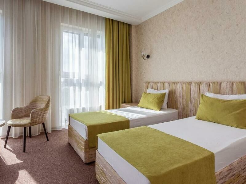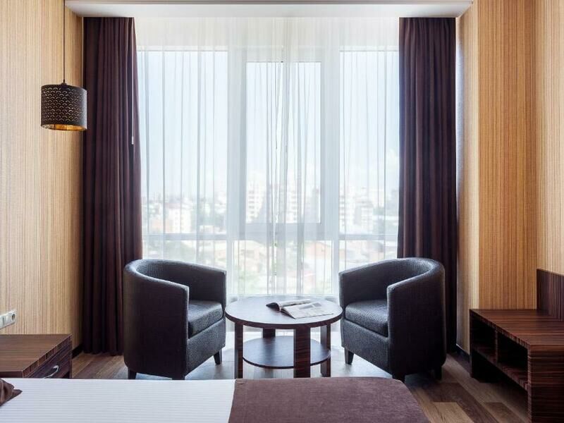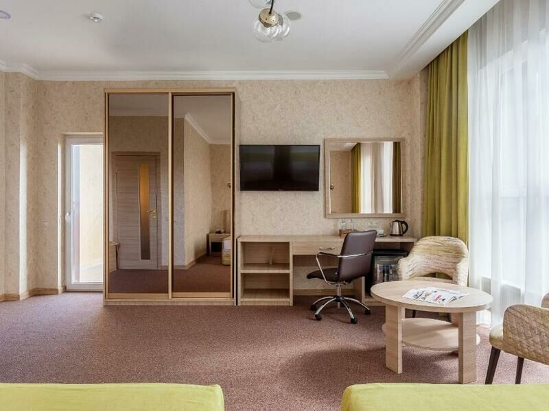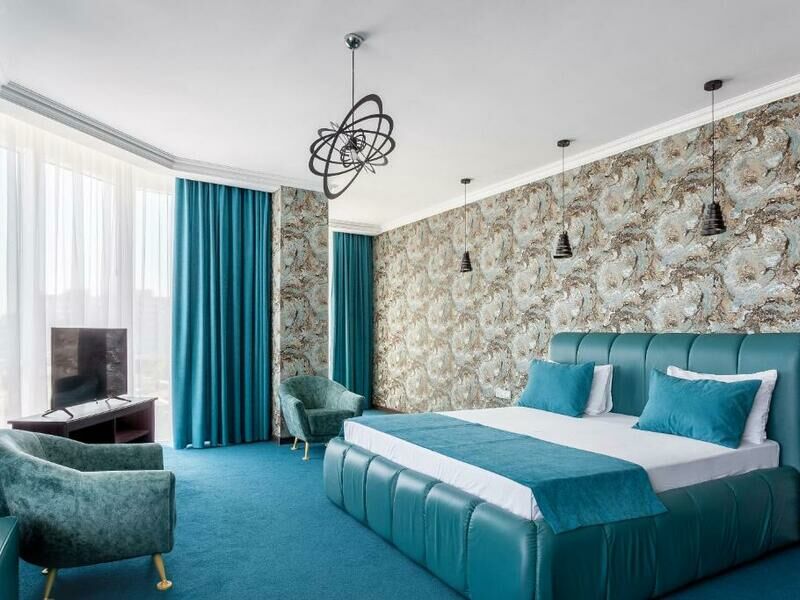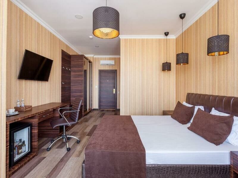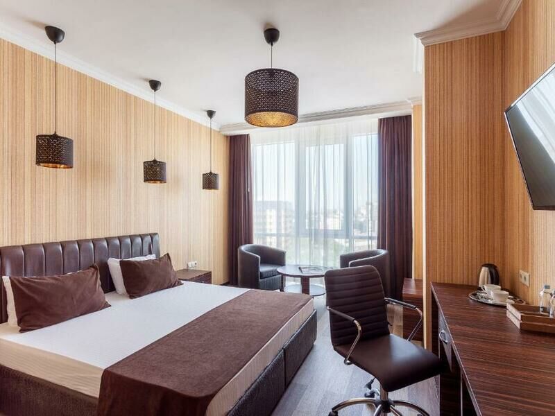 12-ти этажное здание отеля, оснащенное лифтом, возвышается на одной из главных городских магистралей центрального района — улице Мира. Гостей ожидают двухместные номера категории Стандарт, Люкс и Комфорт. Интерьер комнат выдержан в классическом стиле и приятной цветовой гамме, преимущественно пастельных теплых оттенков. Номера хорошо меблированы и оснащены современной техникой — сплит-системой, электрочайником, холодильником, телевизором.