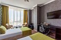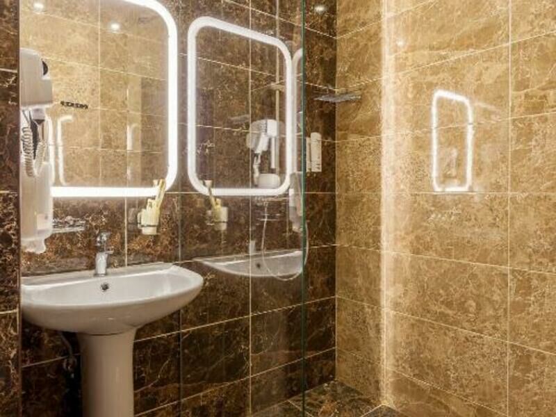 НедостаткиПроблемы с сантехникой. В номерах и коридорах нет кулеров с питьевой водой. На завтрак надо приходить пораньше, иначе все переполнено и долго ждать раздачи. Не дают халаты и полотенца. За окном шумно.