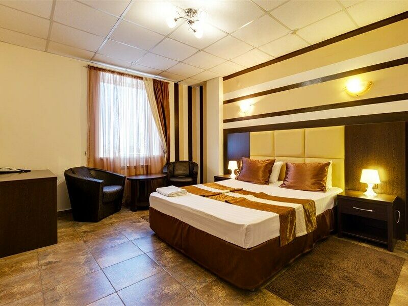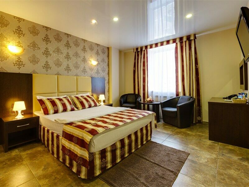 Шестиэтажное здание отеля, оснащенное лифтом, включает в себя двухместные комфортабельные номера. Среди них — номера категории Стандарт Twin и Double, стильный Полулюкс и двухкомнатный Люкс. В комнатах удобная современная мебель, бытовая техника — телевизор, фен, сплит-система, холодильник и собственная ванная комната с душем.