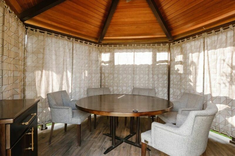 С 13 уютными беседками разной площади, от 4 до 50 посадочных мест, общей вместимостью 120 гостей.