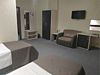 Wi-Fi, телефон, холодильник, кондиционер, фен, санузел, банные полотенца, тапочки, гигиенические средства, шкаф для одежды, раковина, ковровое покрытие, отопление, душ, три односпальные кровати, стул, стол, тумба, телевизор с плоским экраномВ номере