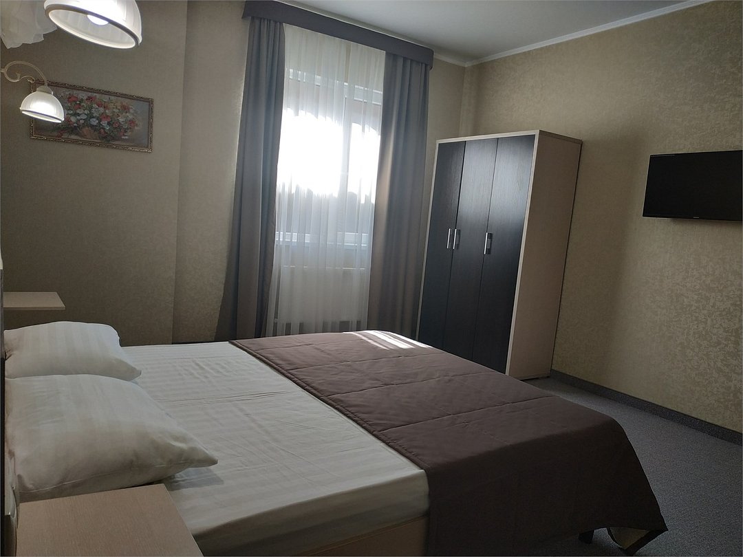 Wi-Fi, телефон, холодильник, кондиционер, фен, санузел, банные полотенца, тапочки, гигиенические средства, двуспальная кровать, односпальная кровать, шкаф для одежды, раковина, ковровое покрытие, отопление, душ, стул, стол, тумба, телевизор с плоским экраномВ номере