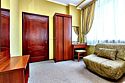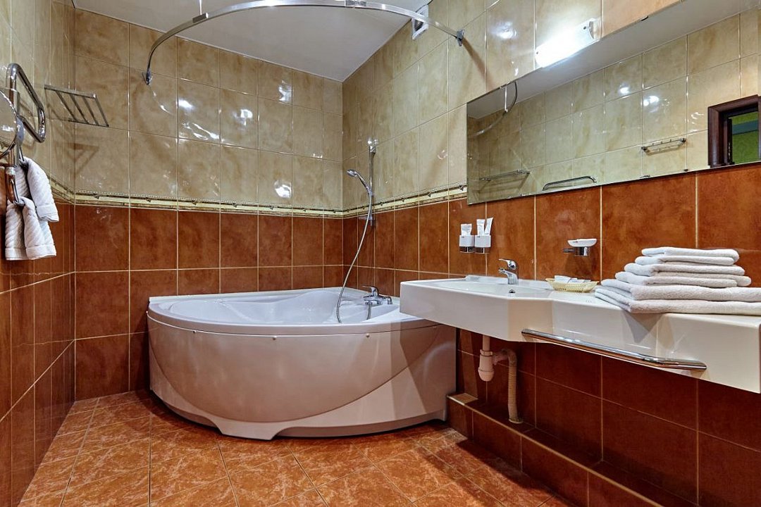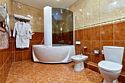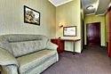 Комфортные тихие номера двухкомнатные люксы с двухспальной кроватью, в которых есть, холодильник, большой телевизор, душевые принадлежности, набор полотенец, шкаф, обувница, большой стол с диванчиком тумбы, стол для макияжа или работы, стулья, кондиционер. В ванной комнате туалет большая ванна-джакузи, раковина, фен.