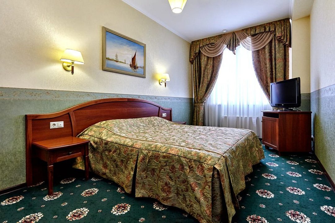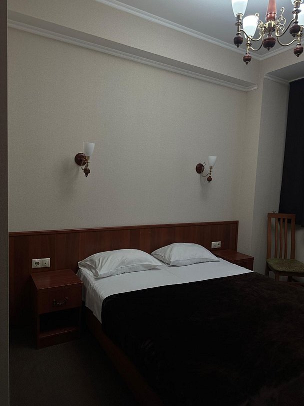 Комфортные тихие номера с двухспальной кроватью, в которых есть, холодильник, телевизор, душевые принадлежности, набор полотенец, шкаф, обувница, тумбы, стол, стул, кондиционер. В ванной комнате туалет ванна, раковина, фен.