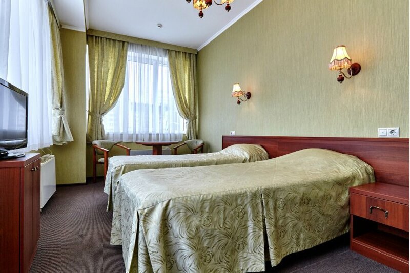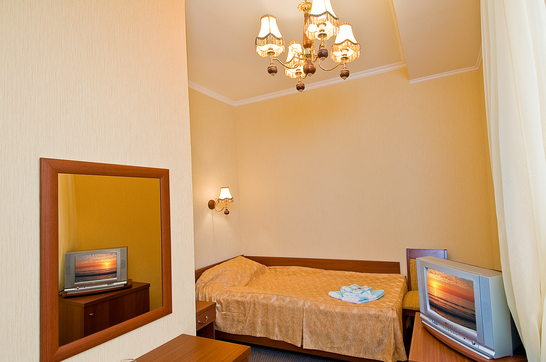 Комфортные тихие номера с раздельными кроватями, в которых есть, холодильник, телевизор, душевые принадлежности, набор полотенец, шкаф, обувница, тумбы, стол, стул, кондиционер. В ванной комнате туалет ванна, раковина, фен. Доп. место на кресло-кровати.