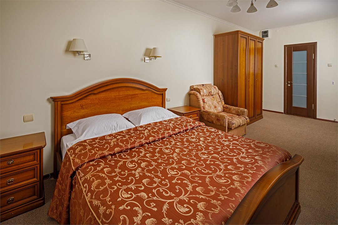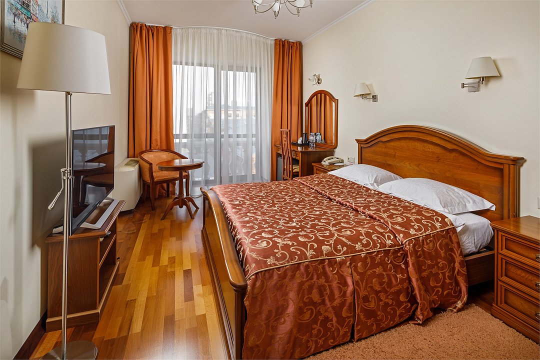 Номера «Classic Двухместный» - просторны, респектабельны , и рассчитаны на деловых людей, желающих обеспечить себе максимально комфортное пребывание ! Во всех номерах «Classic двухместный» изысканный классический интерьер , элегантная итальянская мебель из натурального дерева, мягкие сдержанные тона в интерьере, удобное рабочее место и большая двуспальная кровать. Наполненные светом номера «Classic двухместный» располагают просторной и элегантной гостиной зоной. Большая ванная комната с естественным освещением и французским балконом оборудована душевой кабиной.Услуги и удобства