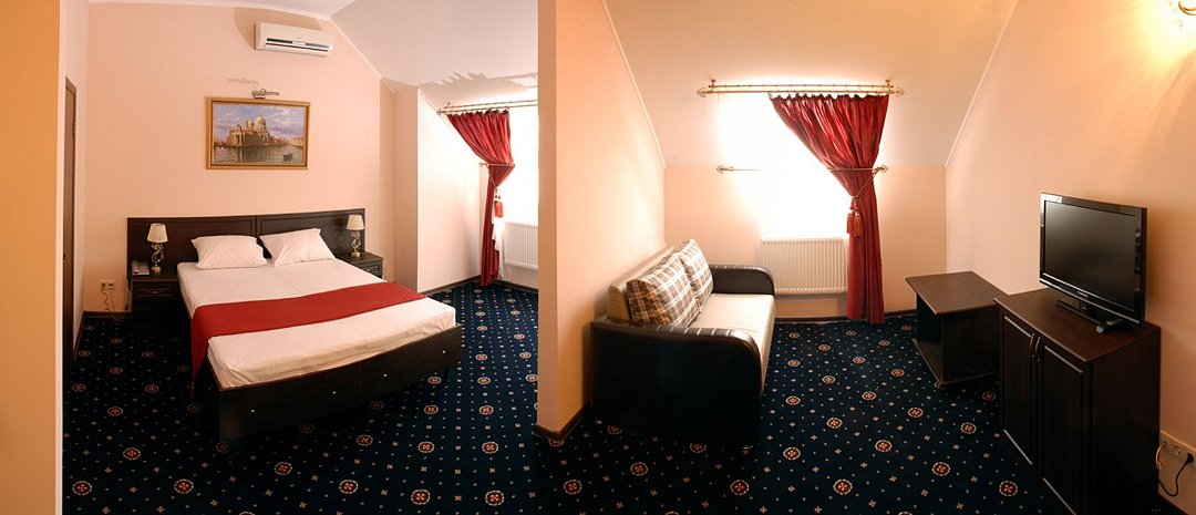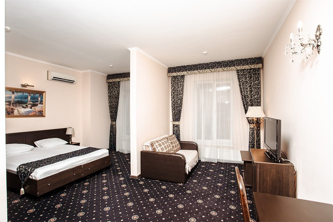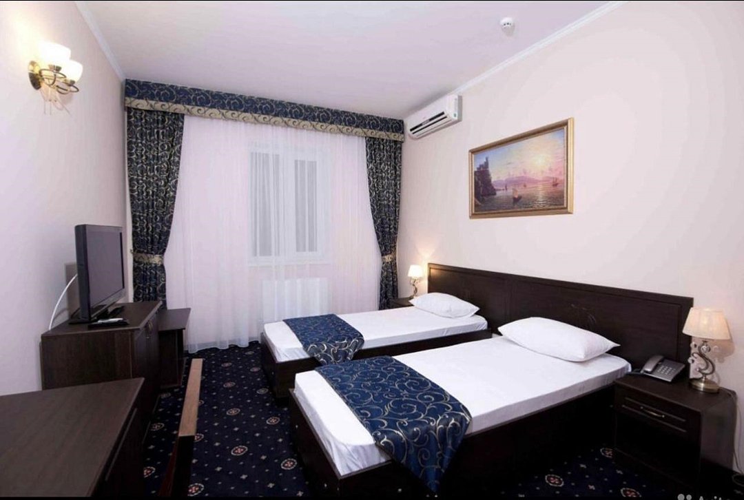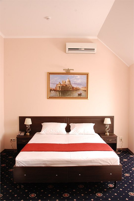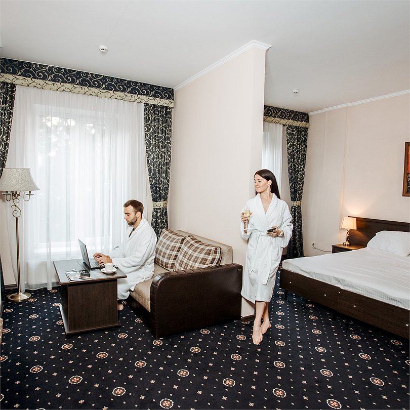 Уютный, полноценно меблированный номер со всеми удобствами. В номере двухспальная (или две односпальные) кровать, шкаф-купе, журнальный и письменный столы, тумбочки, телевизор, холодильник, сплит-система, отлично оснащенный санузелУслуги и удобства