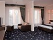 Просторный номер с зоной гостиной и зоной спальни, полноценно меблированный, со всеми удобствами. В номере двухспальная (или две односпальные) кровать, раскладной диван, шкаф-купе, журнальный и письменный столы, тумбочки, телевизор, холодильник, сплит-система, отлично оснащенный санузелУслуги и удобства