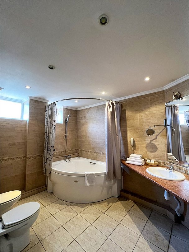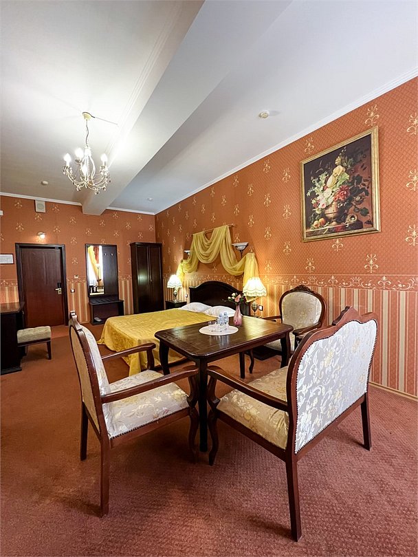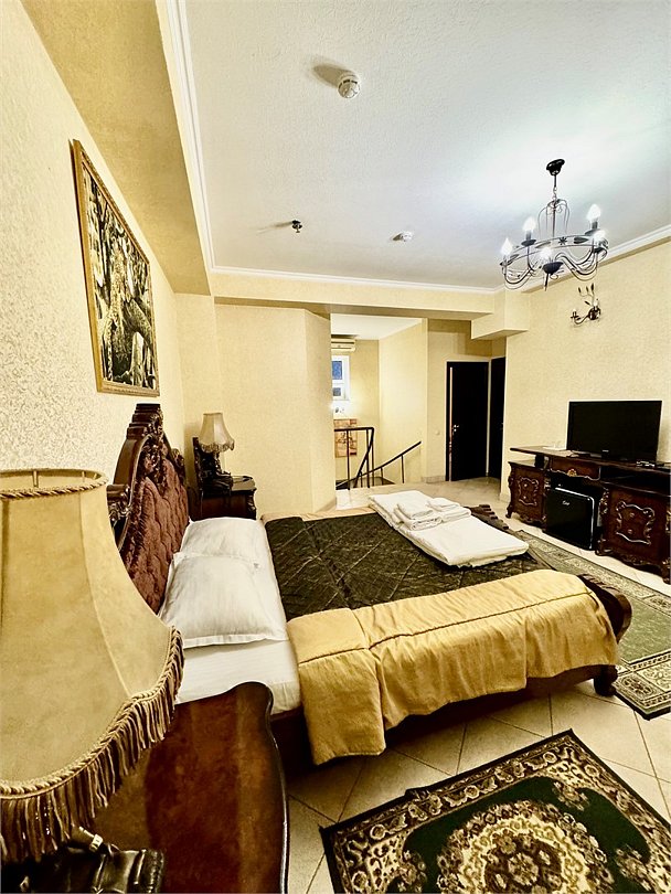 телевизор, Wi-Fi, интернет, фен, ванна, санузел, кровать «King size», двуспальная кровать, диван, тумбы, стулья, шкаф для одежды, вешалки, унитаз, раковина, вид во двор, стол, туалетные средства, туалет, сплит-система, цифровое тв, мини-холодильник, рабочий стол, можно с питомцамиВ номере