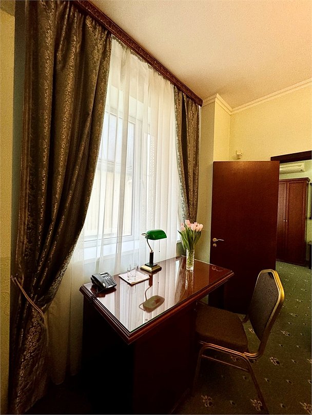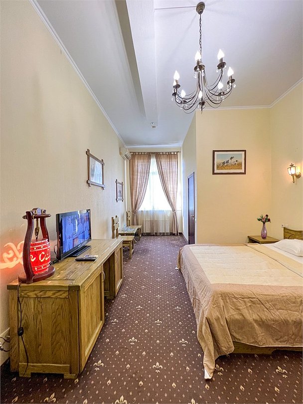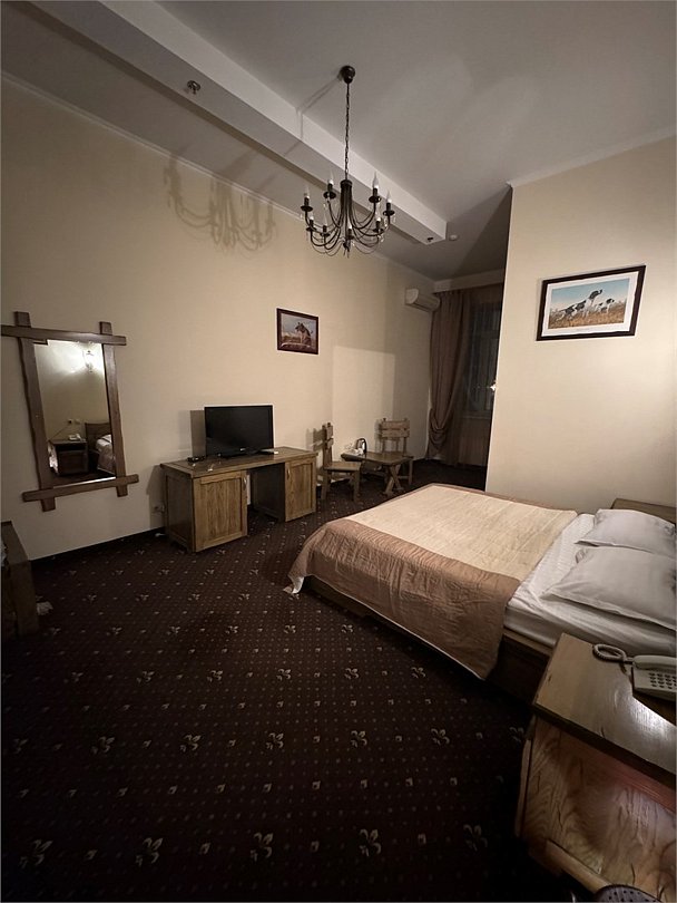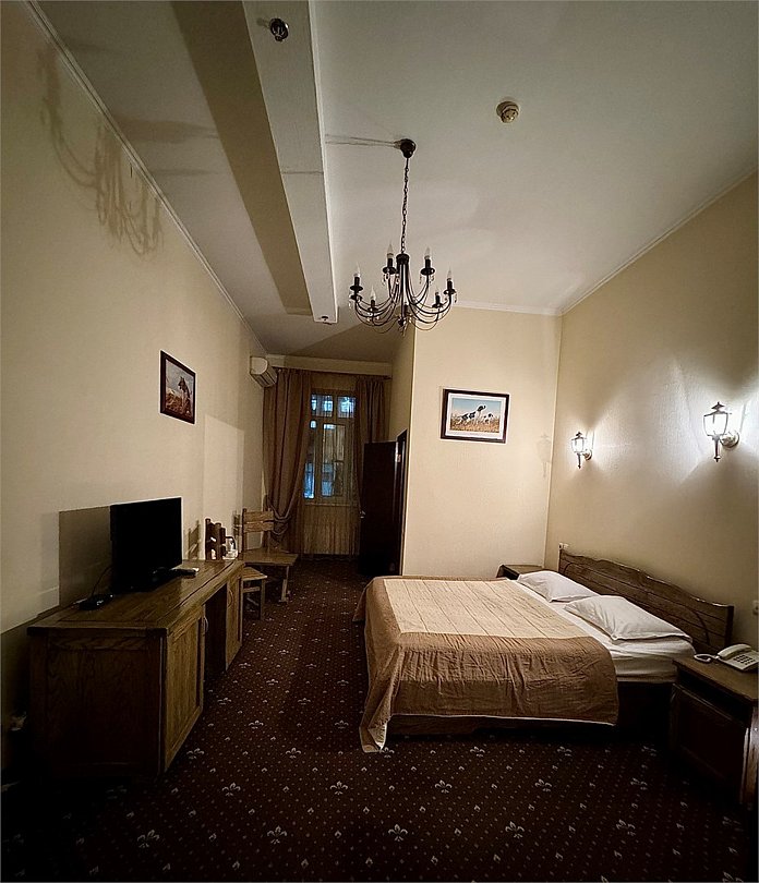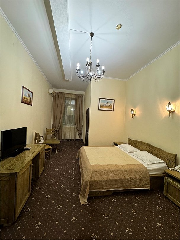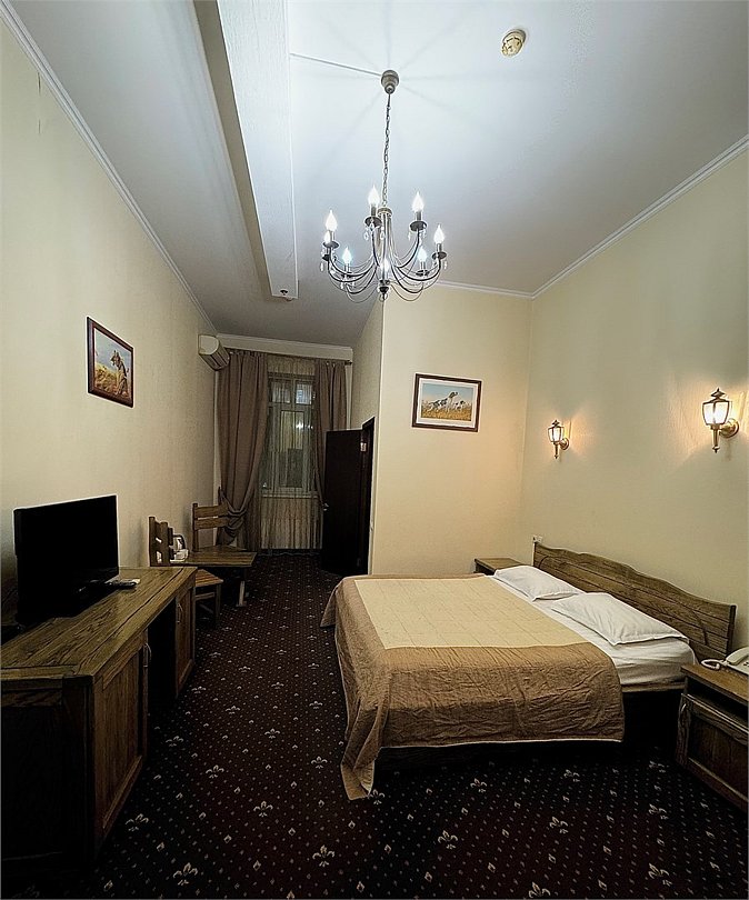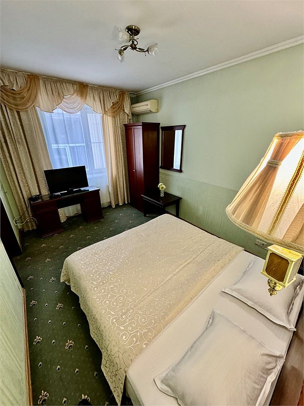Wi-Fi, интернет, фен, утюг, ванна, гигиенические средства, кровать «King size», двуспальная кровать, унитаз, кулер на этаже, вид во двор, окна выходят в атриум отеля, туалетные средства, туалет, сплит-система, цифровое тв, внутренний телефон, телевизор с плоским экраном, мини-холодильник, можно с питомцамиВ номере