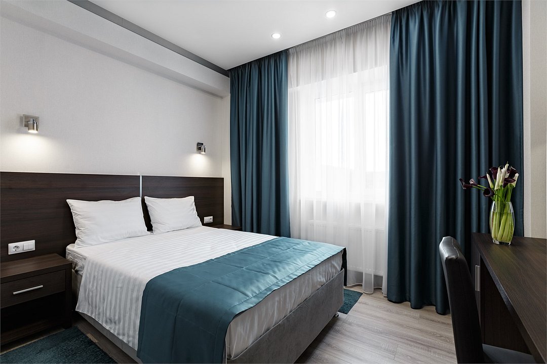 Стандарт площадью 23 кв.м. В номере большая двуспальная кровать Queen-size, шкаф для одежды, письменный стол, телевизор с плоским экраном и Smart TV, бесплатный Wi-Fi, телефонная связь, кондиционер, электрический чайник с чайным набором и мини-холодильник. Ванная комната с душем укомплектована набором полотенец, халатами, тапочками, косметическими и гигиеническими принадлежностями. В номере категории «Стандарт с кроватью Queen-size» предоставляется премиальная британская косметика бренда «The White Company», являющаяся синонимом идеальной простоты, повседневной роскоши и безупречного качества. Лучшая коллекция элегантных и восстанавливающих ароматов для тела в отеле «Parallel Congress by Stellar Hotels, Krasnodar».Услуги и удобства