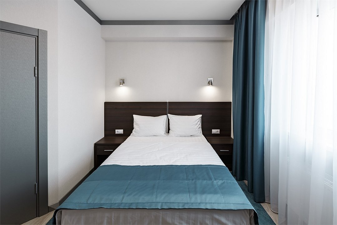 телевизор, кабельное телевидение, Wi-Fi, интернет, кондиционер, фен, электронные замки, утюг, ванная комната, душевая кабина, санузел, банные принадлежности, халаты, банные полотенца, тапочки, гигиенические средства, косметические средства, полутораспальная кровать, гипоаллергенное белье, гладильная доска, ортопедический матрас, тумбы, шкаф для одежды, письменный стол, багажная тумба, зеркало, обслуживание номеров, унитаз, раковина, питьевая вода, отопление, душ, вид на город, вид во двор, стаканы, стул, туалетные средства, туалет, внутренний телефон, телевизор с плоским экраном, мини-холодильник, шкаф-купе, телевизор со Smart TV, номер для некурящих, можно с питомцамиВ номере